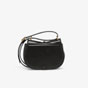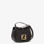 Small satchel bag with curved. feminine lines made of black leather. Embellished with embossed details and edges and an FF logo on the flap.