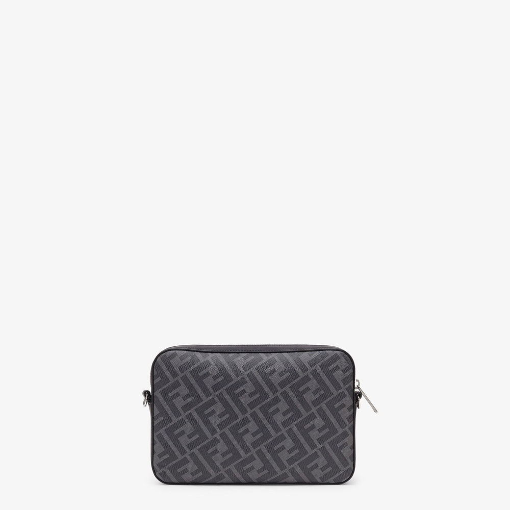 Compact shoulder bag with zip closure. The cross-body strap is adjustable and detachable. Made of textured grey fabric with FF motif. Embellished with black leather insert and yellow inlaid detail. Palladium-finish metalware.