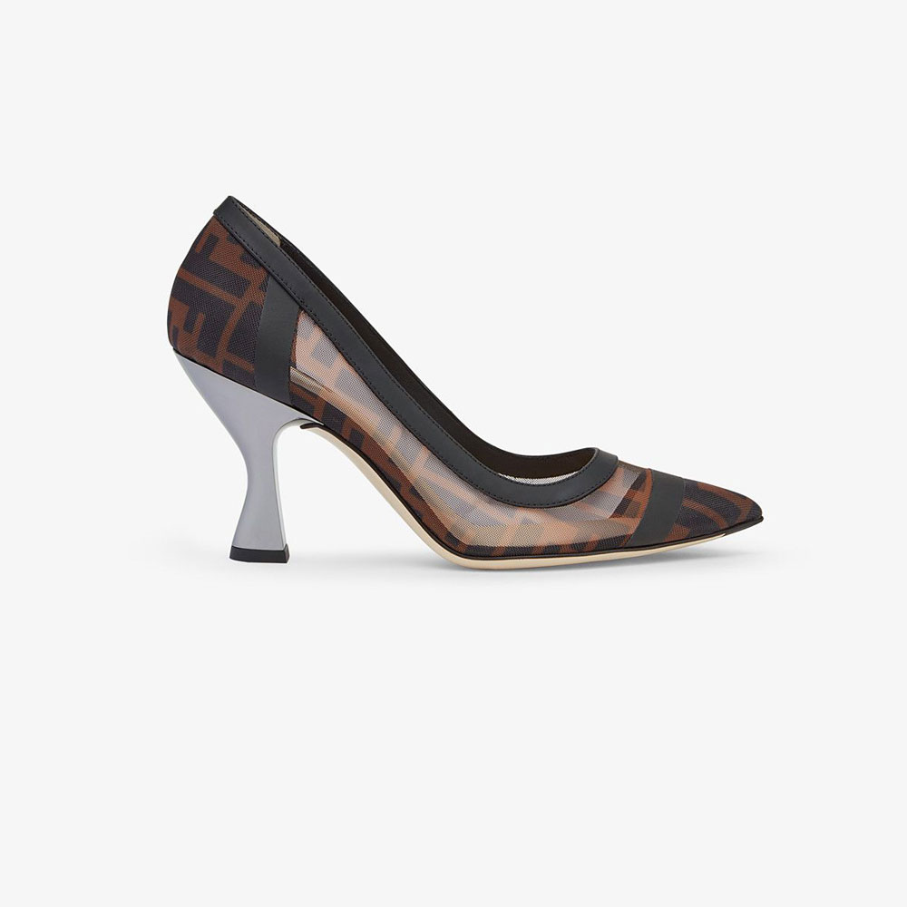 Colibri pointed toe slingback court shoes. The sole is finished with rubber inserts. Made of tech mesh with FF motif. Black, rubberised calfskin profiles. Galvanised heel.