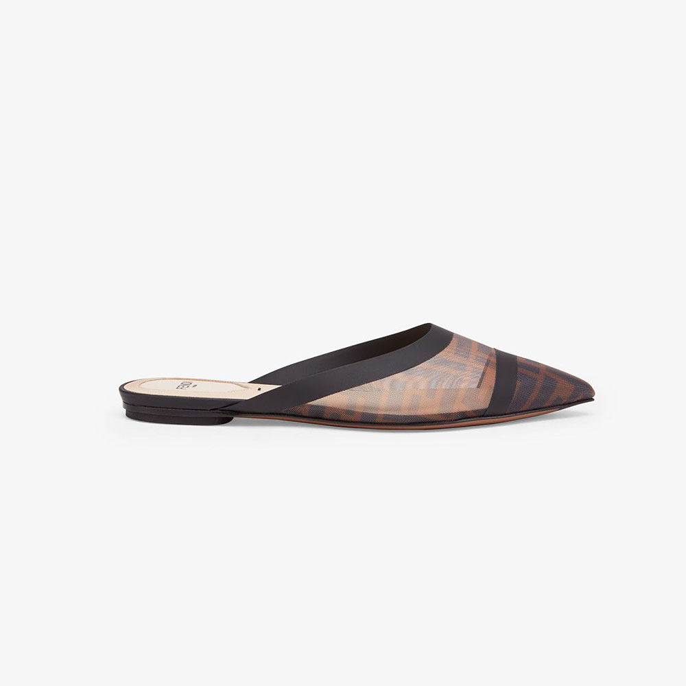 Colibri sabots with pointed toe. Made of tech fabric with brown FF motif. Finished with black heat sealing.