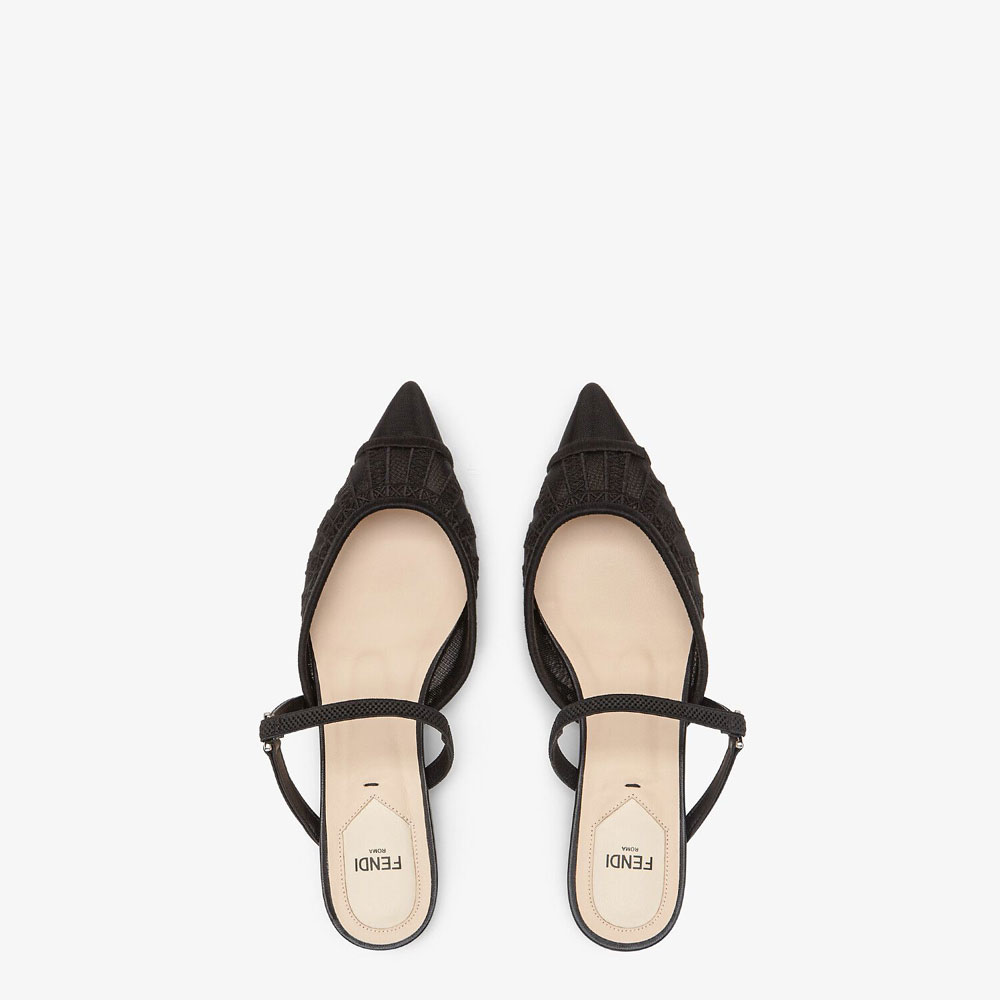 Streamlined and feminine Colibri slingbacks with an elasticated ribbon that wraps around the ankle. The sole is finished with rubber inserts. Made of micro-mesh in black, featuring a jour embroidery. Embellished with leather toe and detailing.