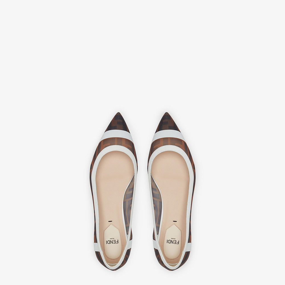 Pointed toe slingback Colibri ballerinas. Made of tech mesh fabric with FF motif. Rubberised white calfskin edging.