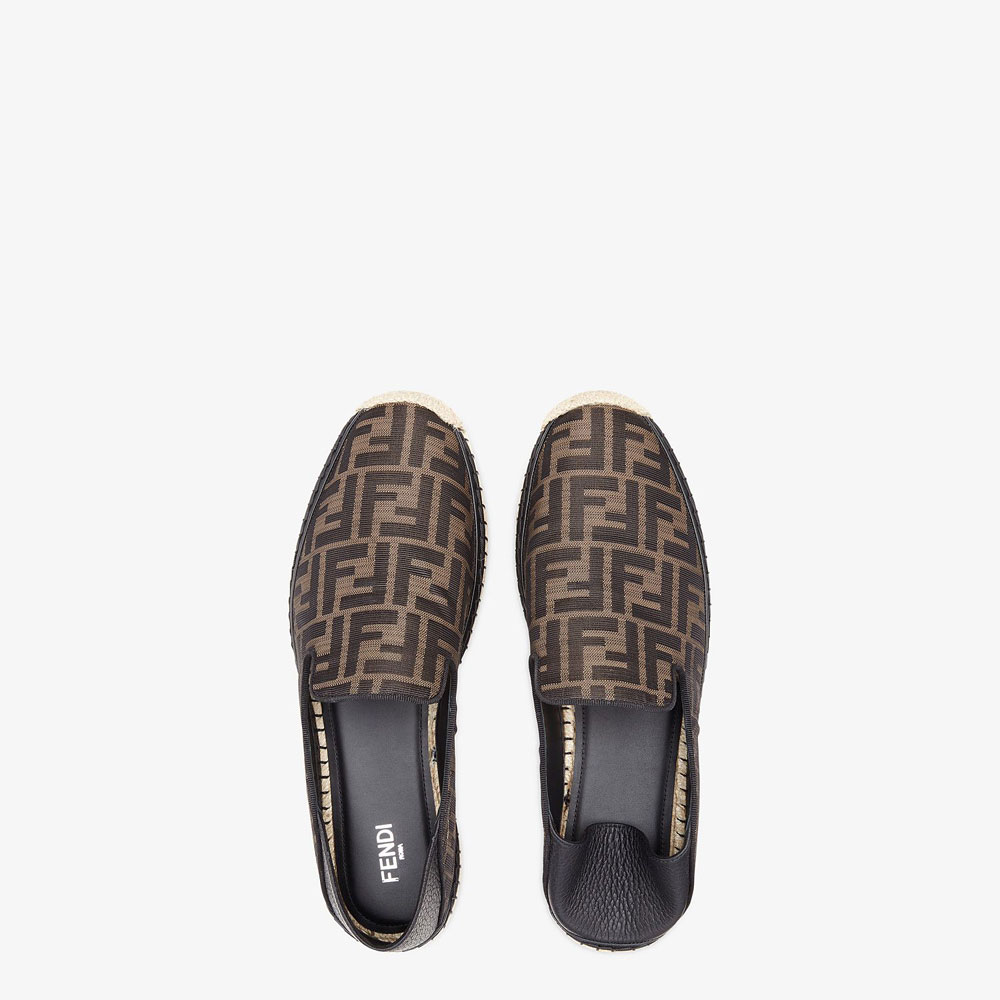 Espadrilles with fold-down leather heel counter, allowing the shoes to be worn as slippers. Rope sole with rubber inserts. Made of nylon jacquard with brown FF motif. Leather trims.