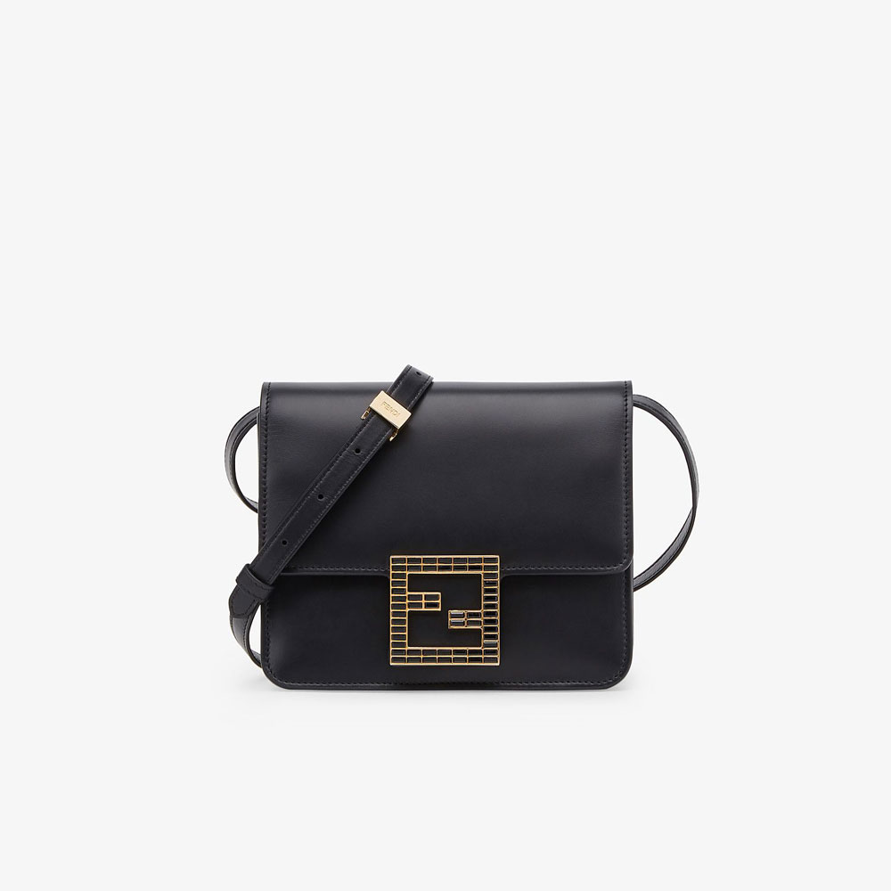 FENDI FAB bag made of black leather, with front flap decorated with metal FF detail with baguette-cut crystals.