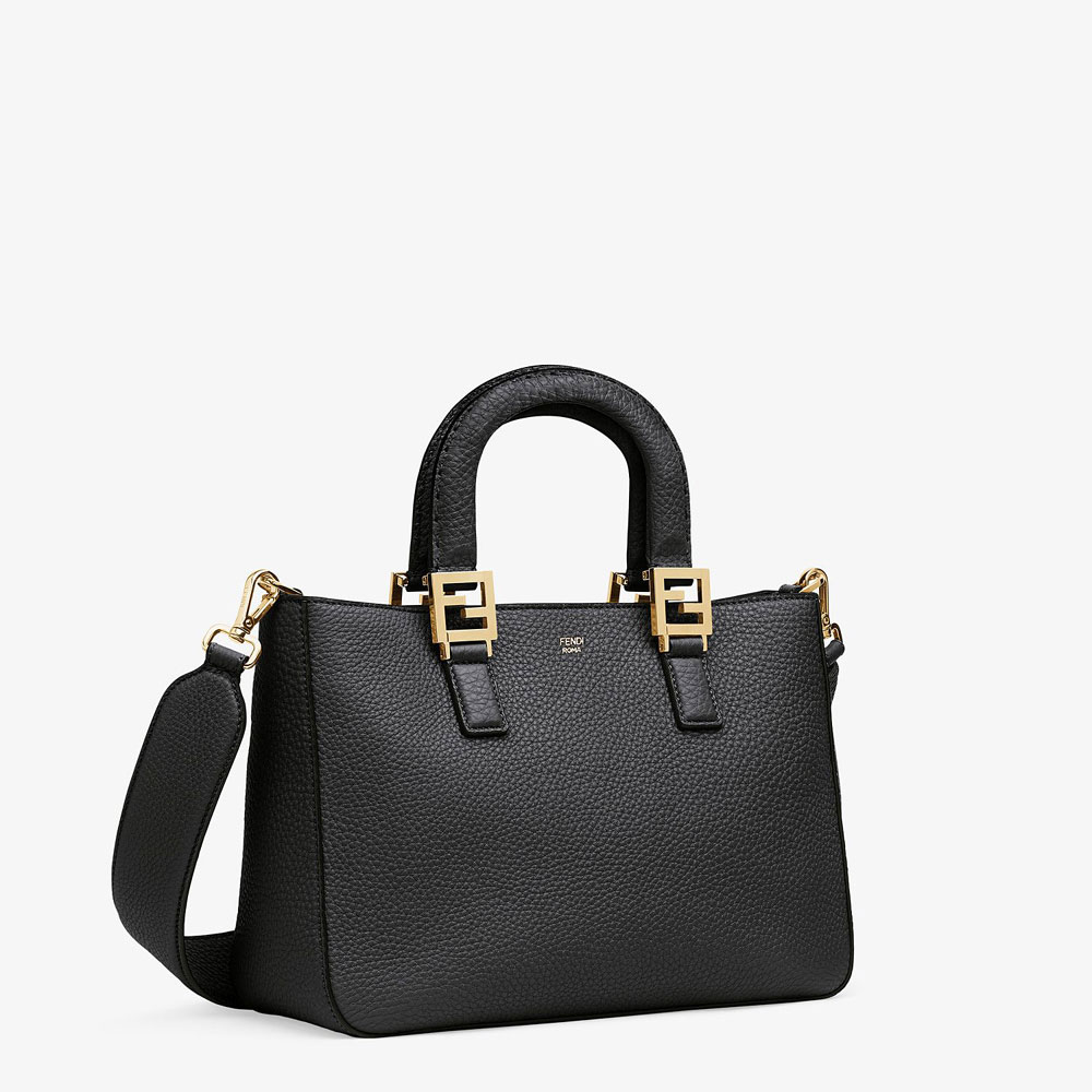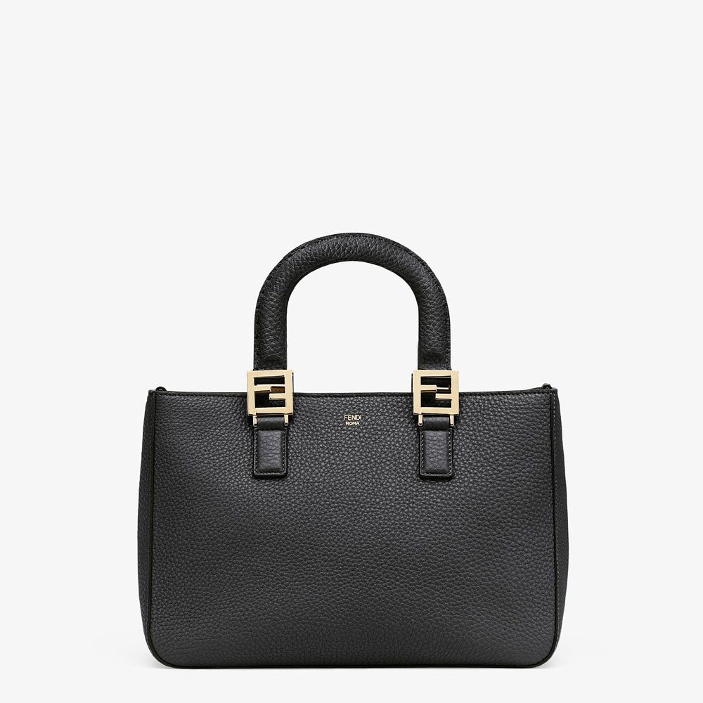 Small FF Tote bag, made of black Cuoio Romano leather and decorated with metallic FF details.