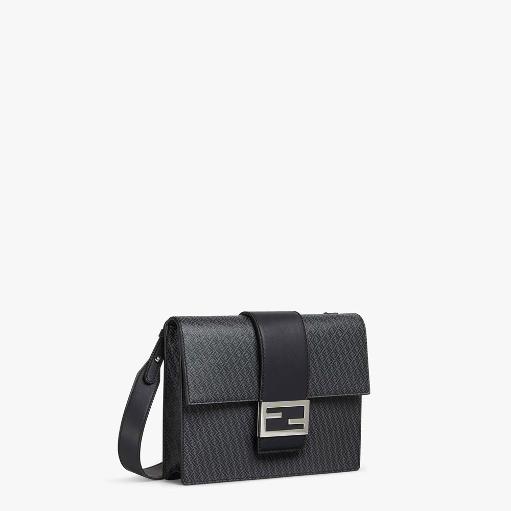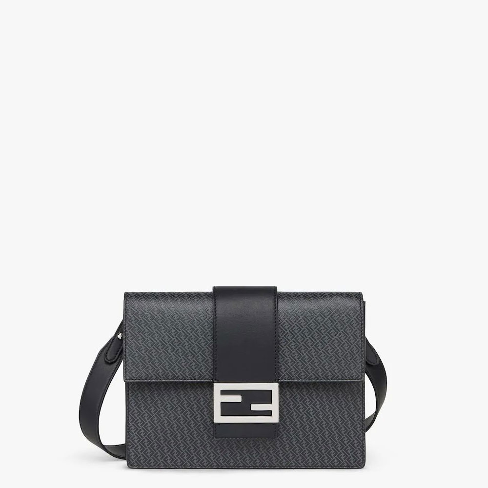 Medium flat Baguette bag in dark grey leather with black all-over FF printed micro motif. FF magnetic clasp.