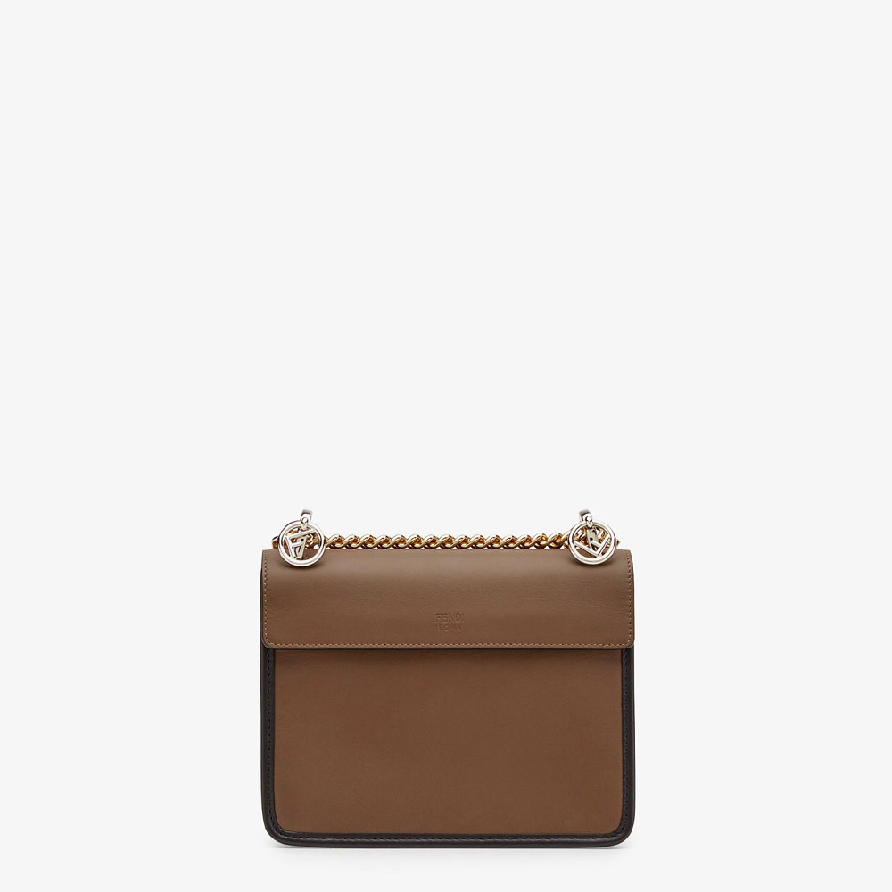 Black leather bag with flap, decorated with an F is Fendi metal logo. Embellished with an embossed and hand-painted FF motif under the flap.