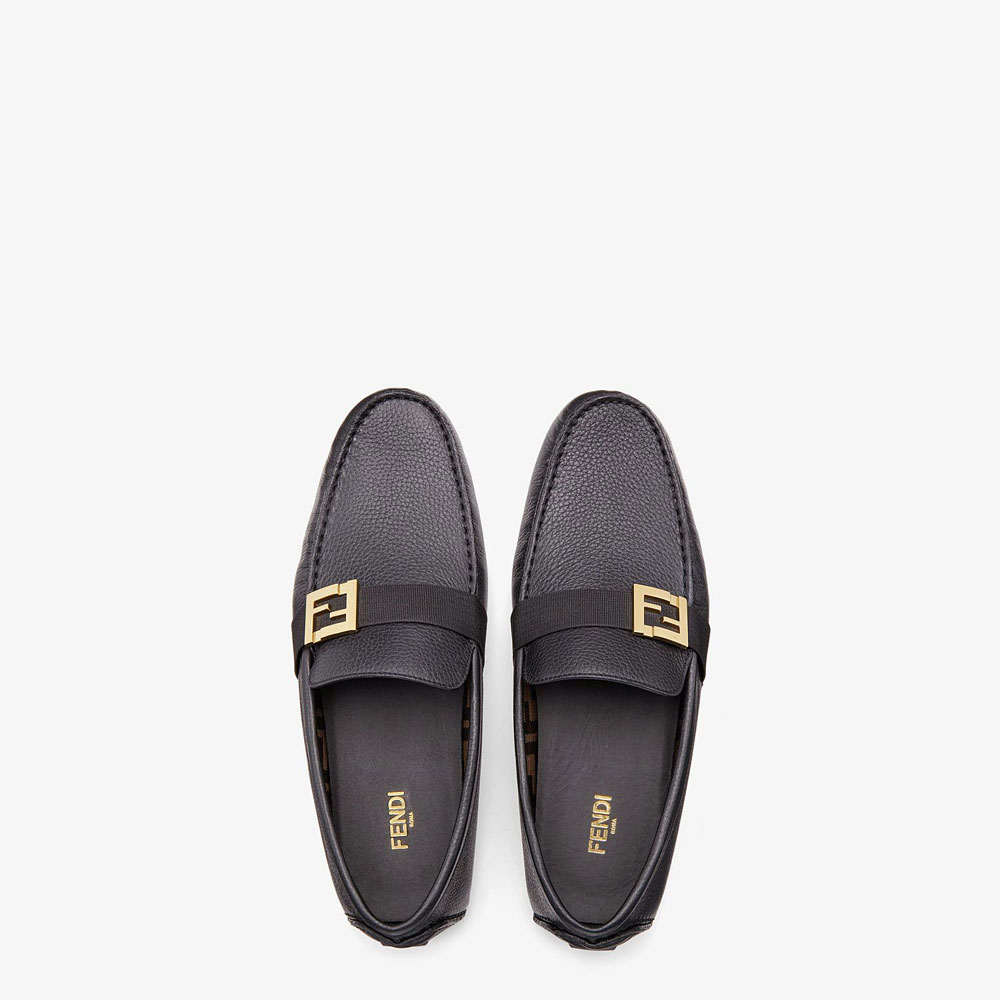 Driving loafers. Flexible pebble sole. Made of black Romano leather. Tonal ribbon with FF detail in satin-finish metal. Jacquard FF fabric lining.