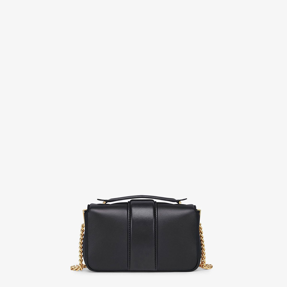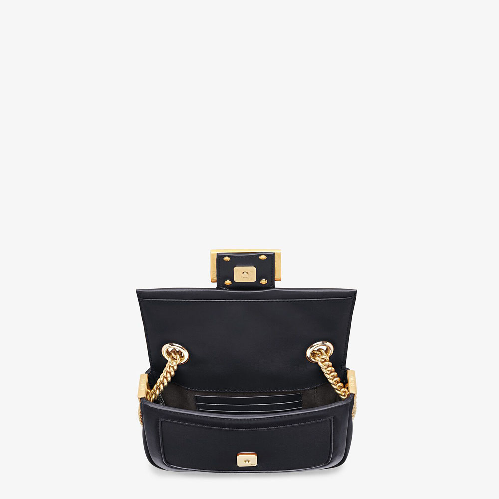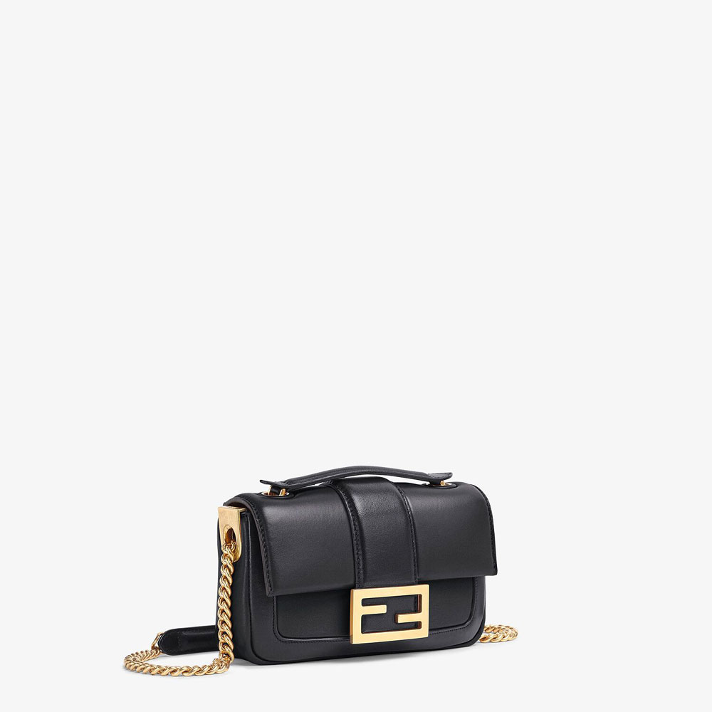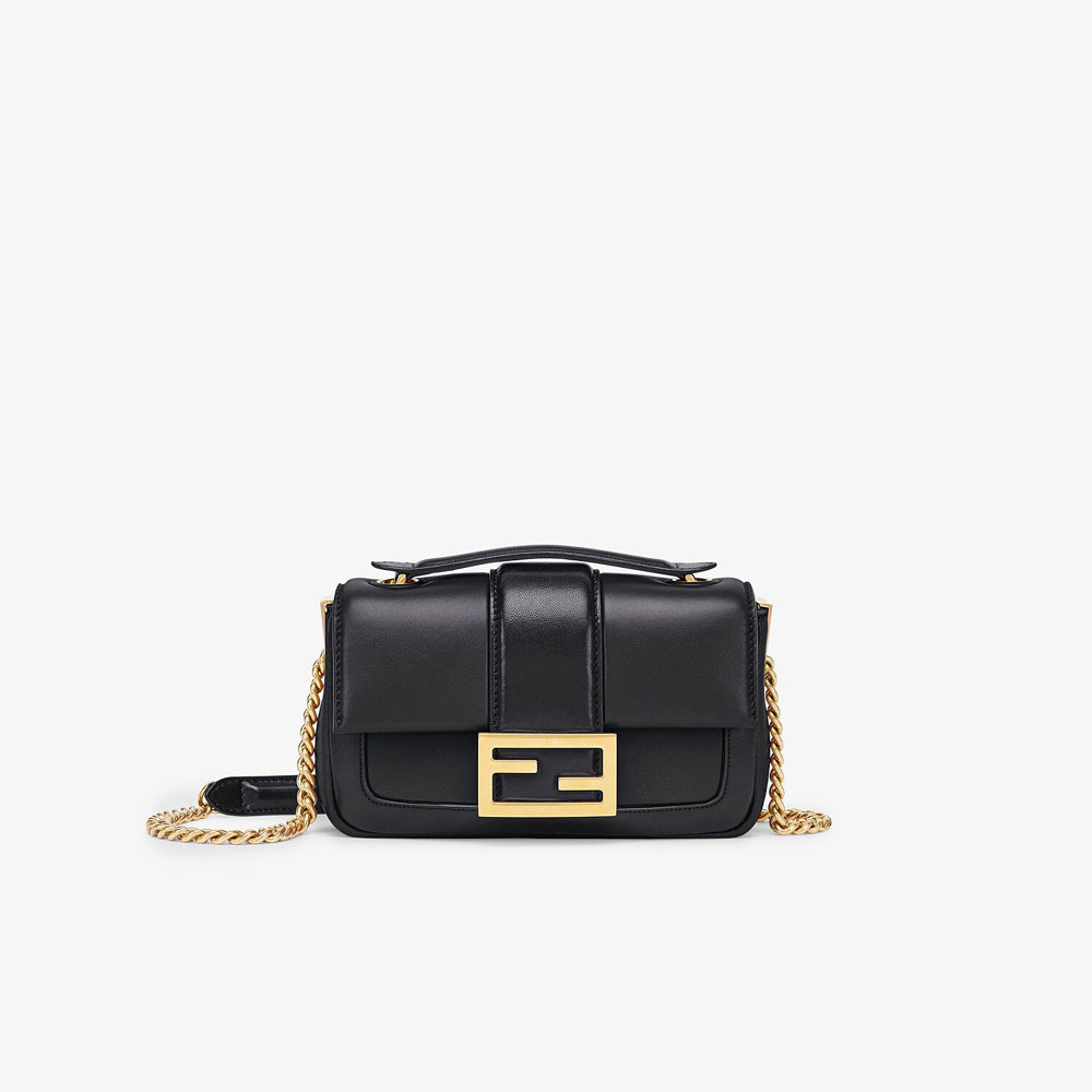 Mini Baguette bag, made of soft, black nappa leather with sliding chain and decorated with an FF clasp.
