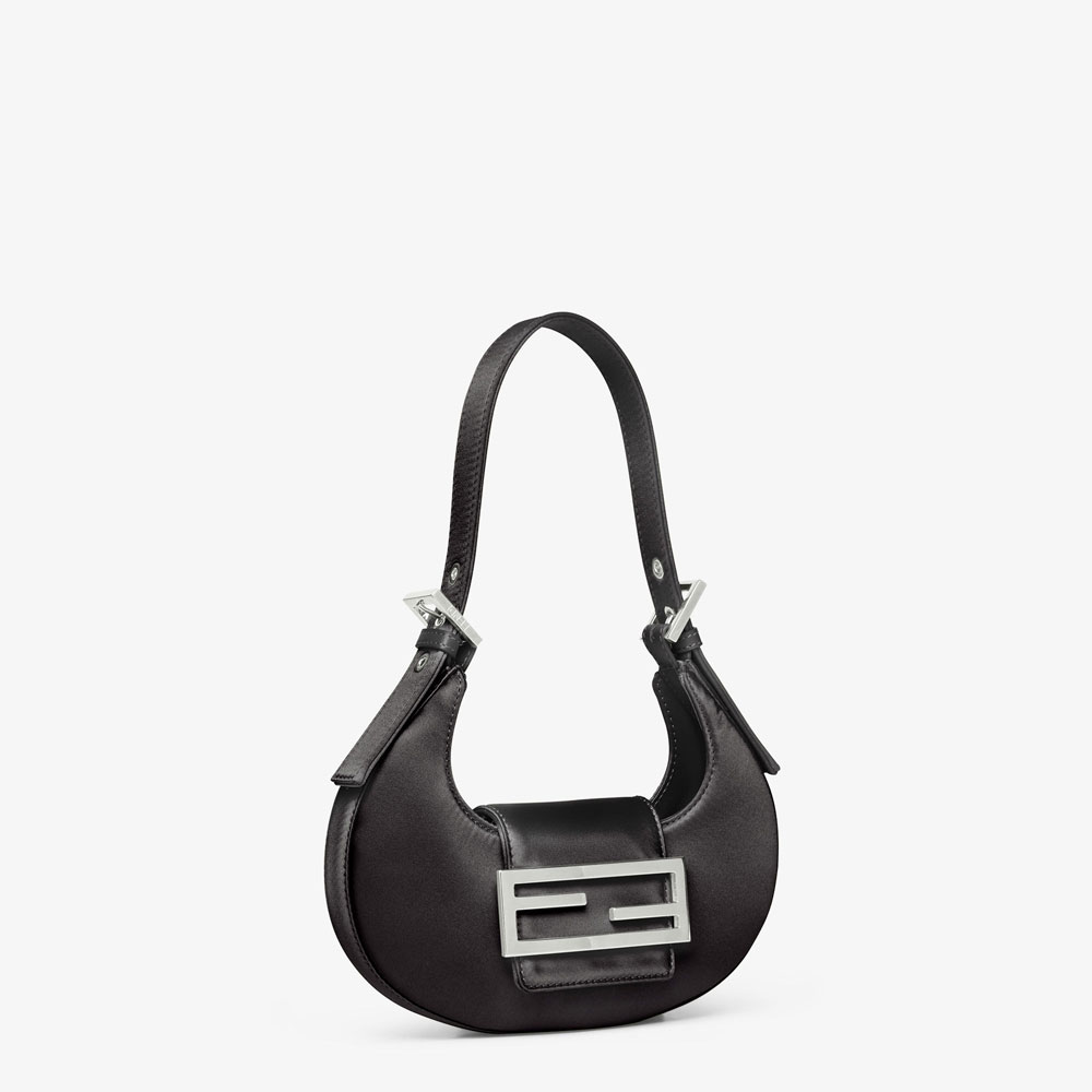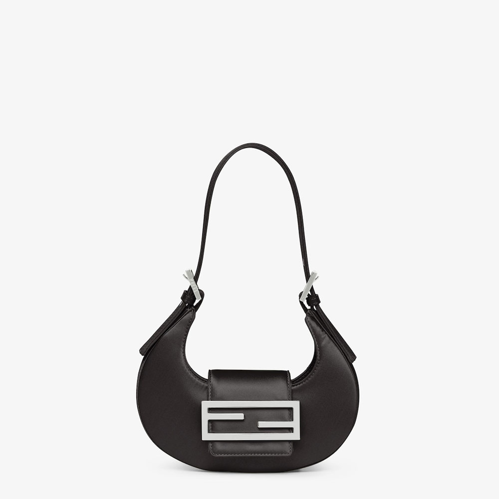 Cookie mini hobo bag made of black silk satin. Decorated with an FF clasp.