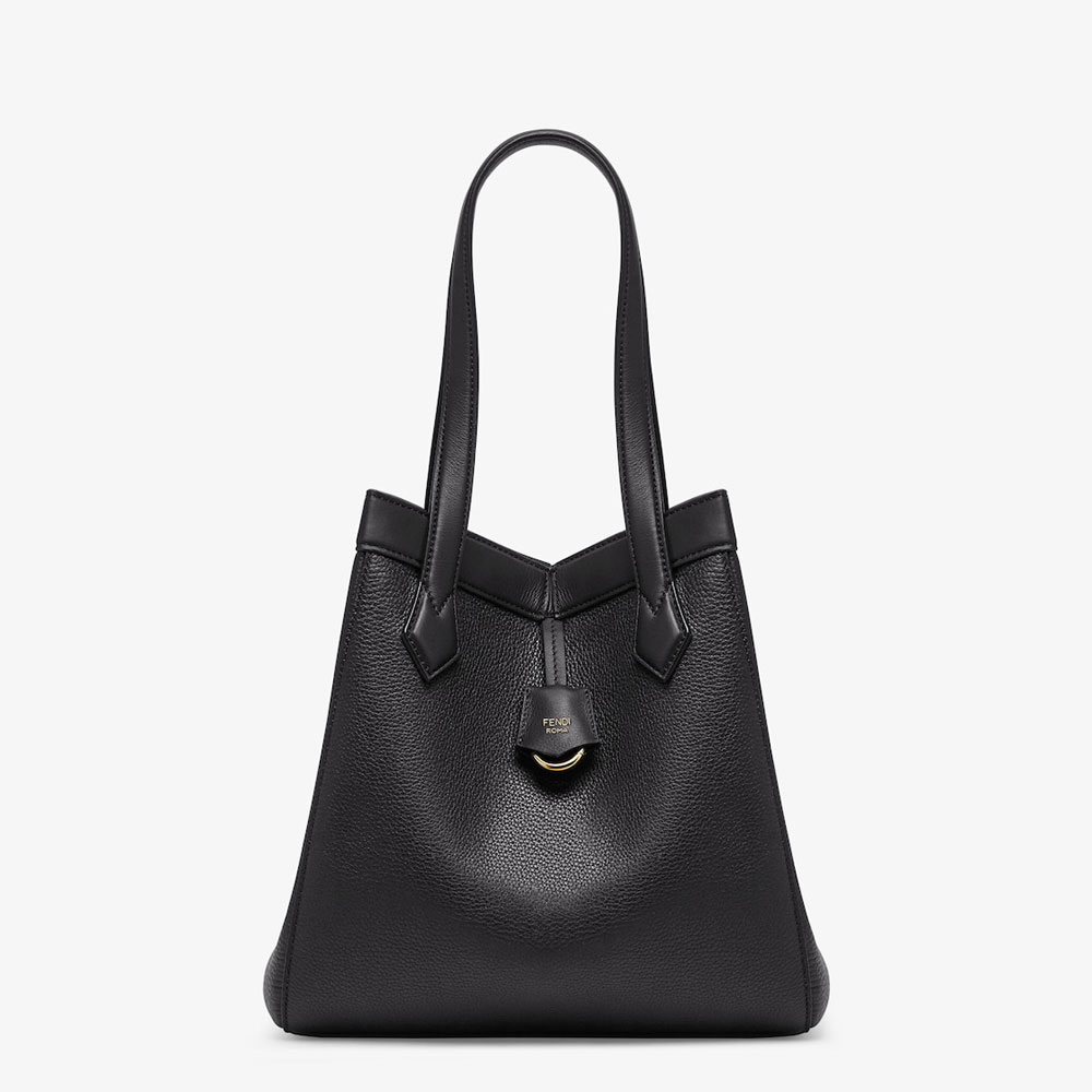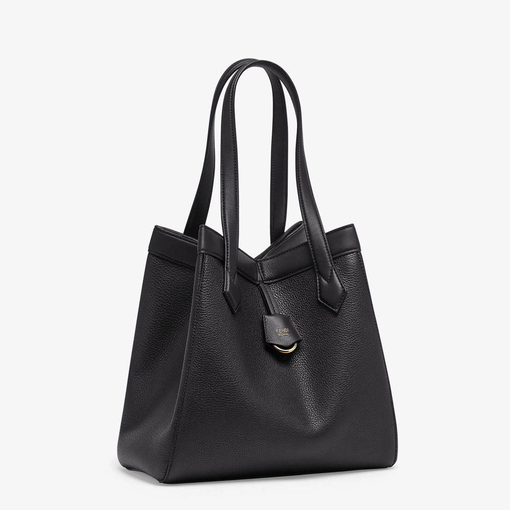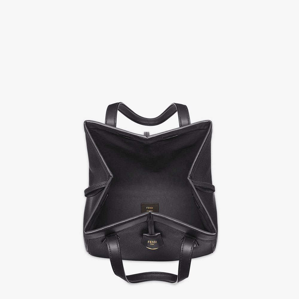 Medium Origami bag made of black full-grain leather. The style recalls the creativity and dual nature of Fendi with an innovative design that can be transformed. Thanks to eight concealed magnets the bag can be styled as a shopper bag or bucket bag by folding it origami style. Size:W27 x H27 x D16.5cm