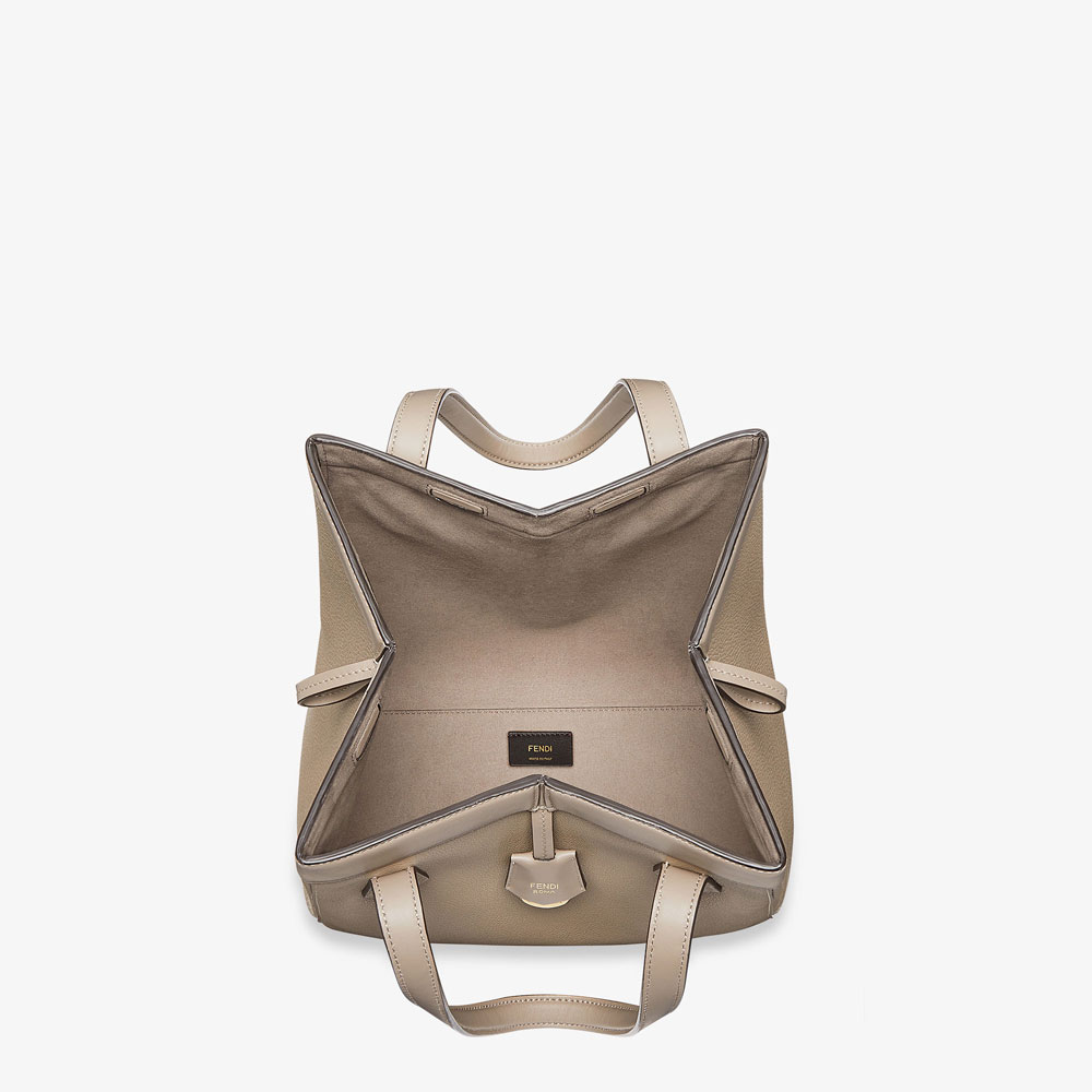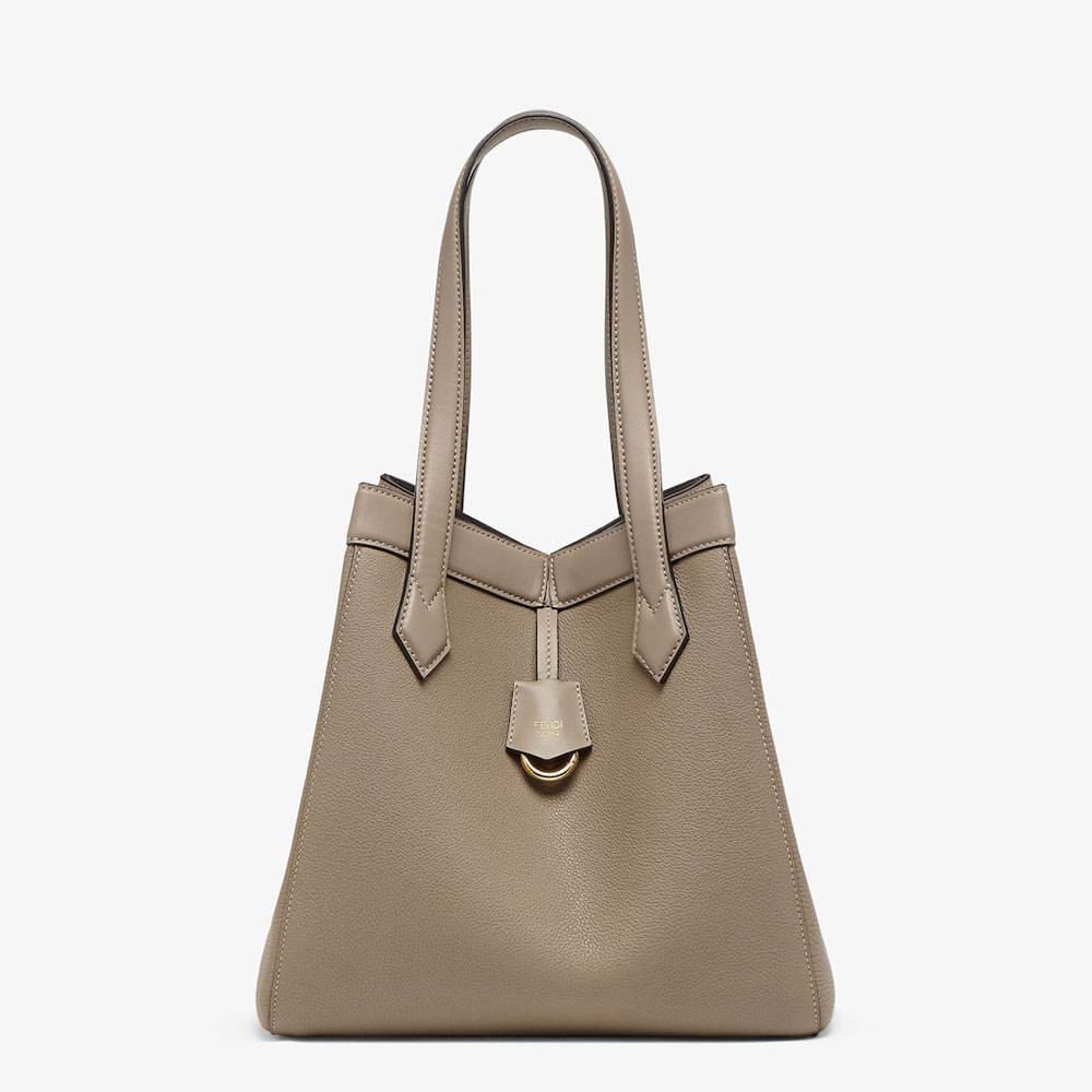 Medium Origami bag made of dove grey full-grain leather. The style recalls the creativity and dual nature of Fendi with an innovative design that can be transformed. Thanks to eight concealed magnets the bag can be styled as a shopper bag or bucket bag by folding it origami style. Size:W27 x H27 x D16.5cm