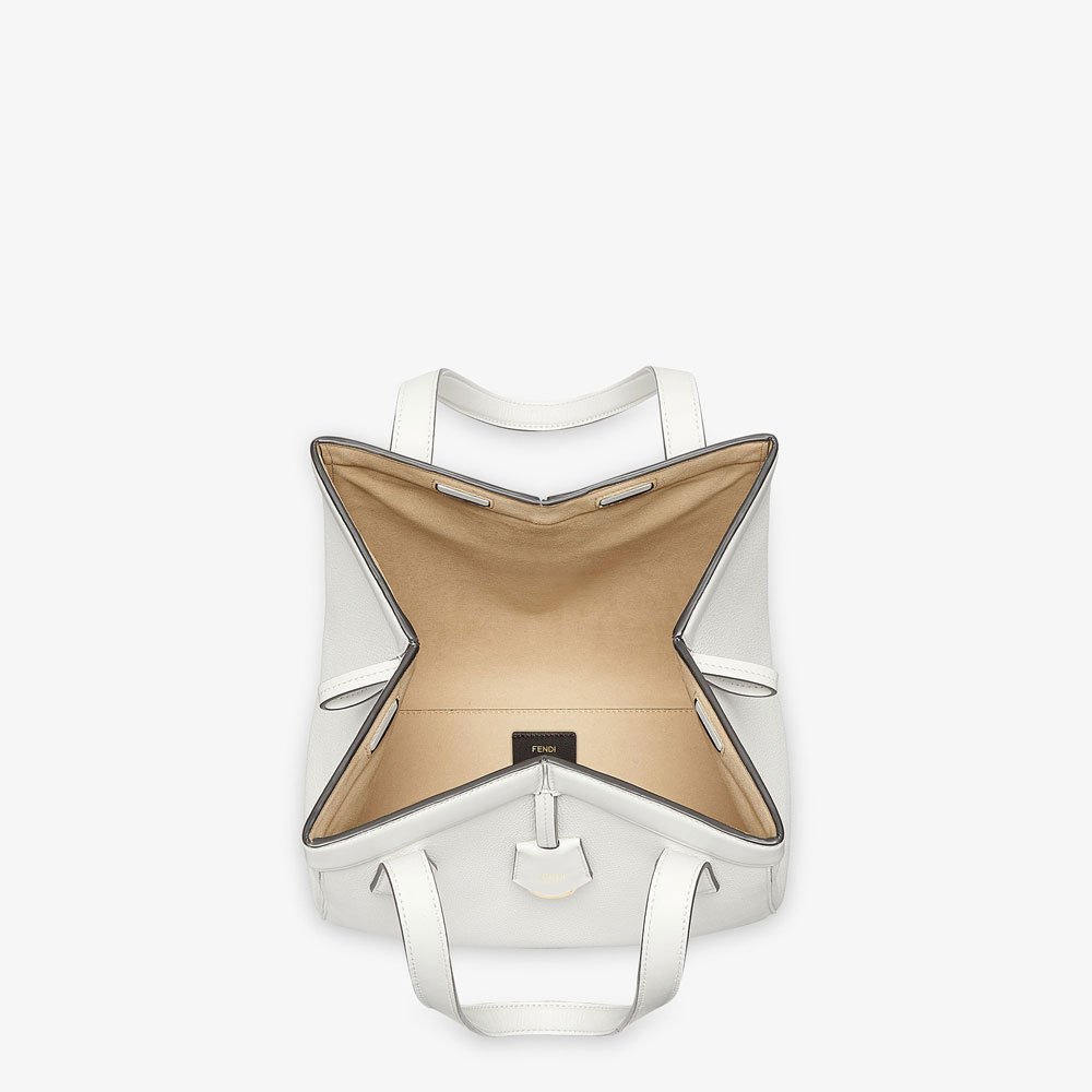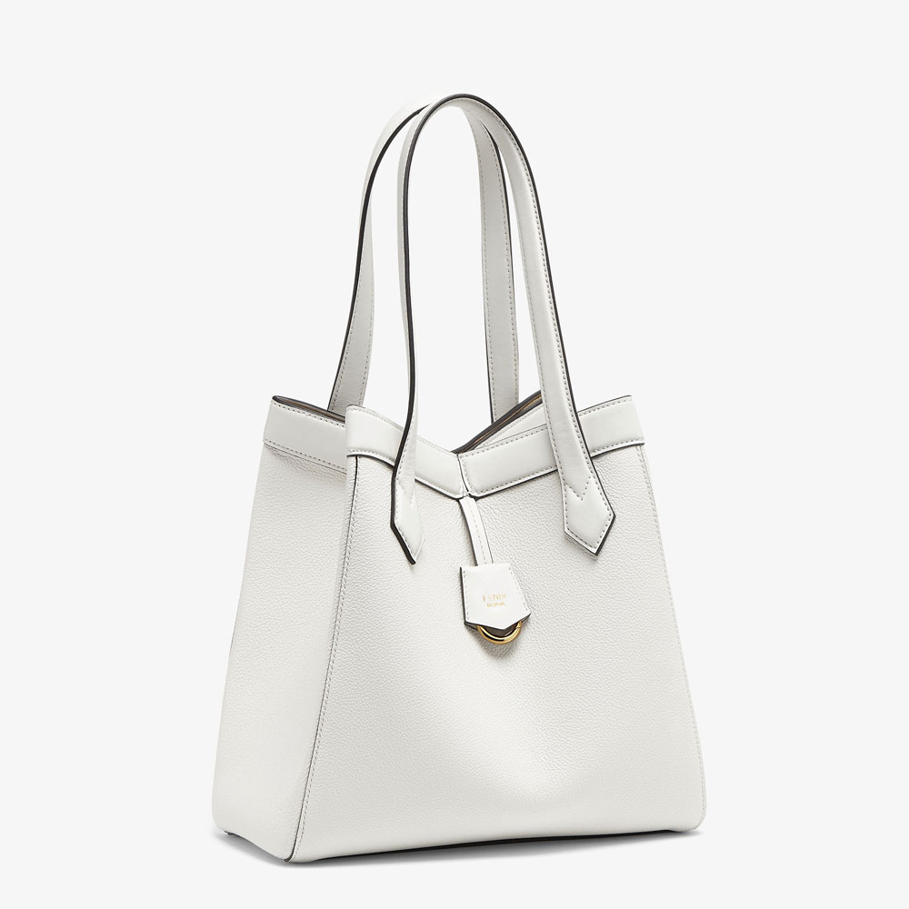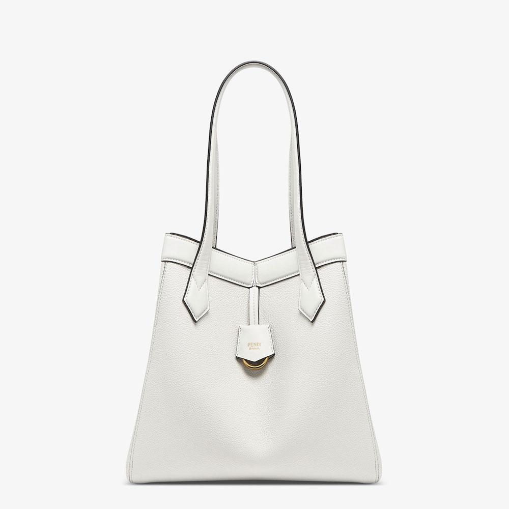 Medium Origami bag made of white full-grain leather. The style recalls the creativity and dual nature of Fendi with an innovative design that can be transformed. Thanks to eight concealed magnets the bag can be styled as a shopper bag or bucket bag by folding it origami style. Size:W27 x H27 x D16.5cm