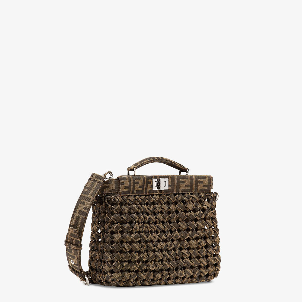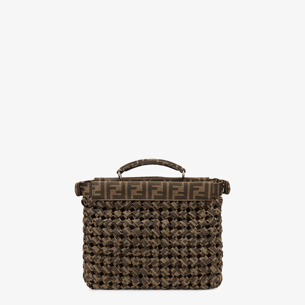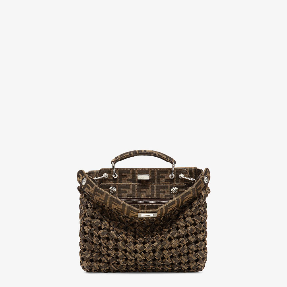 Peekaboo ISeeU bag, size small, with two compartments divided by a stiff partition, featuring the iconic twist lock on the front and zip fastening on the back. Detachable internal pocket. Can be carried by hand or on the shoulder thanks to its handle and the adjustable, detachable shoulder strap. With elegant fabric braiding with jacquard FF motif, totally leather-free. FF fabric pocket. Palladium-finish metalware.