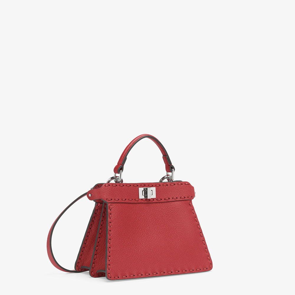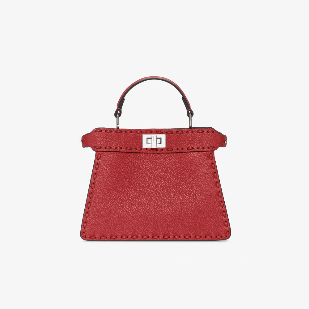 Small iconic Peekaboo ISeeU bag made with 306 hand-sewn macro topstitches, an emblem of the iconic Selleria workmanship handed down through generations of Fendi artisans since 1925.Made of red Cuoio Romano leather, calfskin with a characteristic natural grain, produced with a metal-free tanning process.Featuring a calfskin-lined interior with two internal compartments divided by a stiff Cuoio Romano leather partition