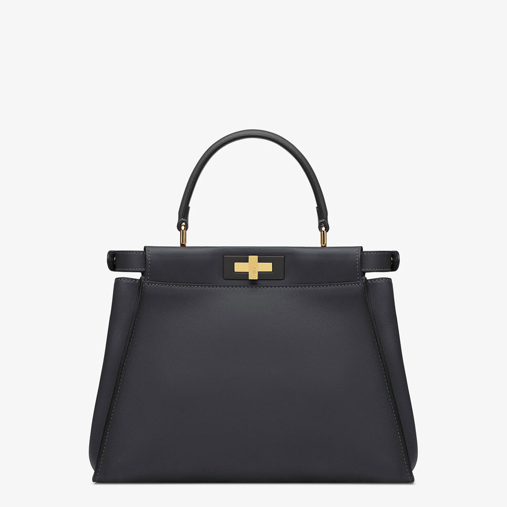 Iconic medium Peekaboo bag made of black leather and embellished with the classic twist lock on both sides.