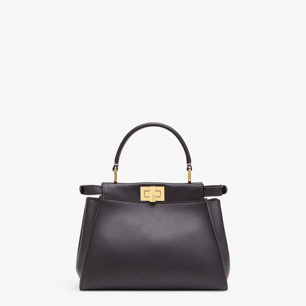 Iconic small Peekaboo bag, made of dark brown leather and embellished with the iconic twist lock on both sides.