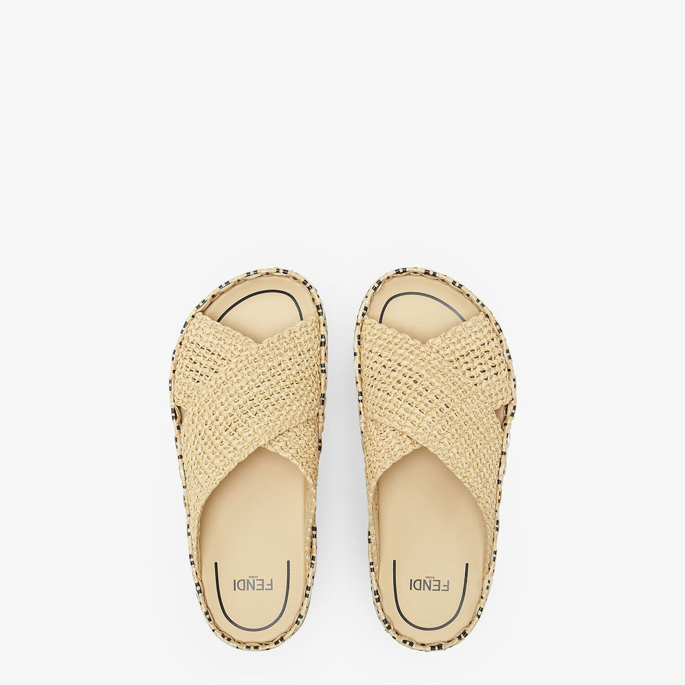 Fendi Reflections Slides Beige Raffia Flats 7X1421 AEH0 F1D1M