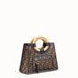 Small shopper with a zipped front pocket. Rigid oval double handle and decorative metal rings. Made of brown calfskin. Iconic FF pattern printed in relief and hand-painted in black. Woven rattan handles. Palladium-finish metalware. 100%calf leather inside:60%polyamide 40%polyurethane 100%rush