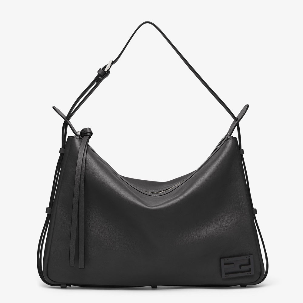 Large Simply Fendi bag, a soft shoulder bag presented at the Fall-Winter 2024/25 fashion show, named after its elegant and essential design inspired by a 1990s archive style.Made of black low-sheen finish calfskin.Decorated with the iconic FF embellishment in tone-on-tone patent leather