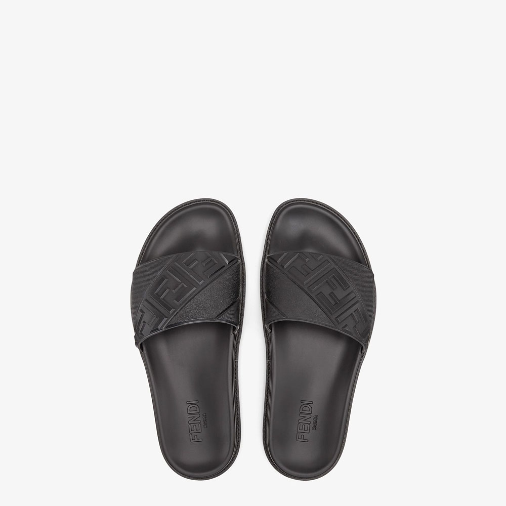 Sandals with high strap. The polyurethane footbed is lightweight and extremely flexible. Non-slip rubber sole. Made of black rubber. Band features a mix of textures with embossed diagonal FF motif.