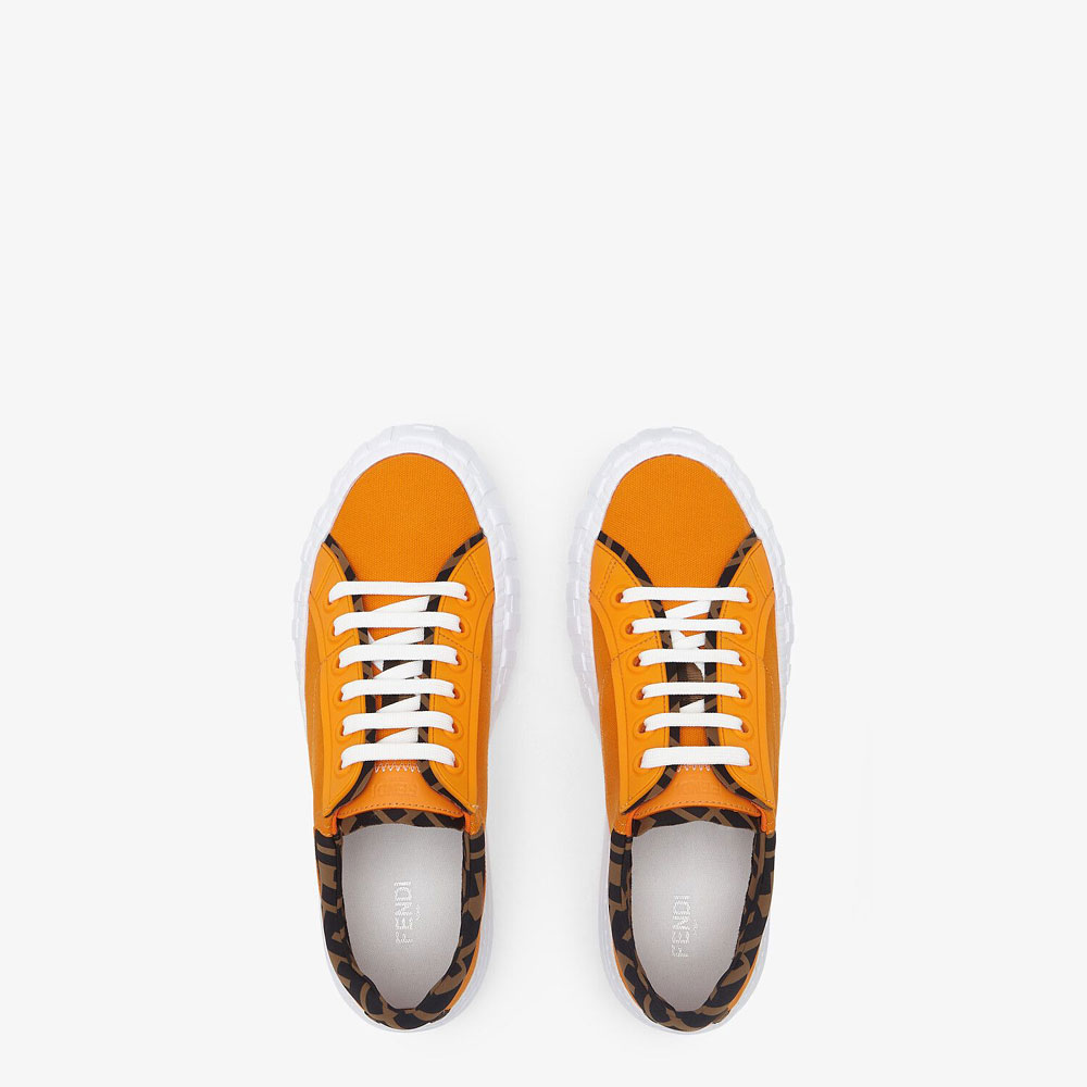 Fendi Force lace-up sneakers. Made of orange canvas with FF LYCRA trims and edges. Tone on tone rubber eyelets Light rubber sole with embossed FF detail on the toe.