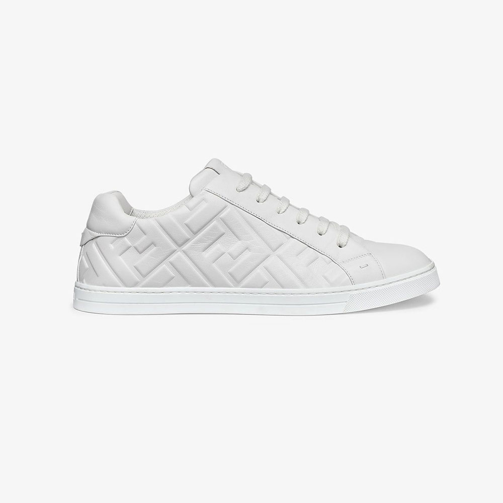 White nappa leather lace-up sneakers with 3D macro FF motif.