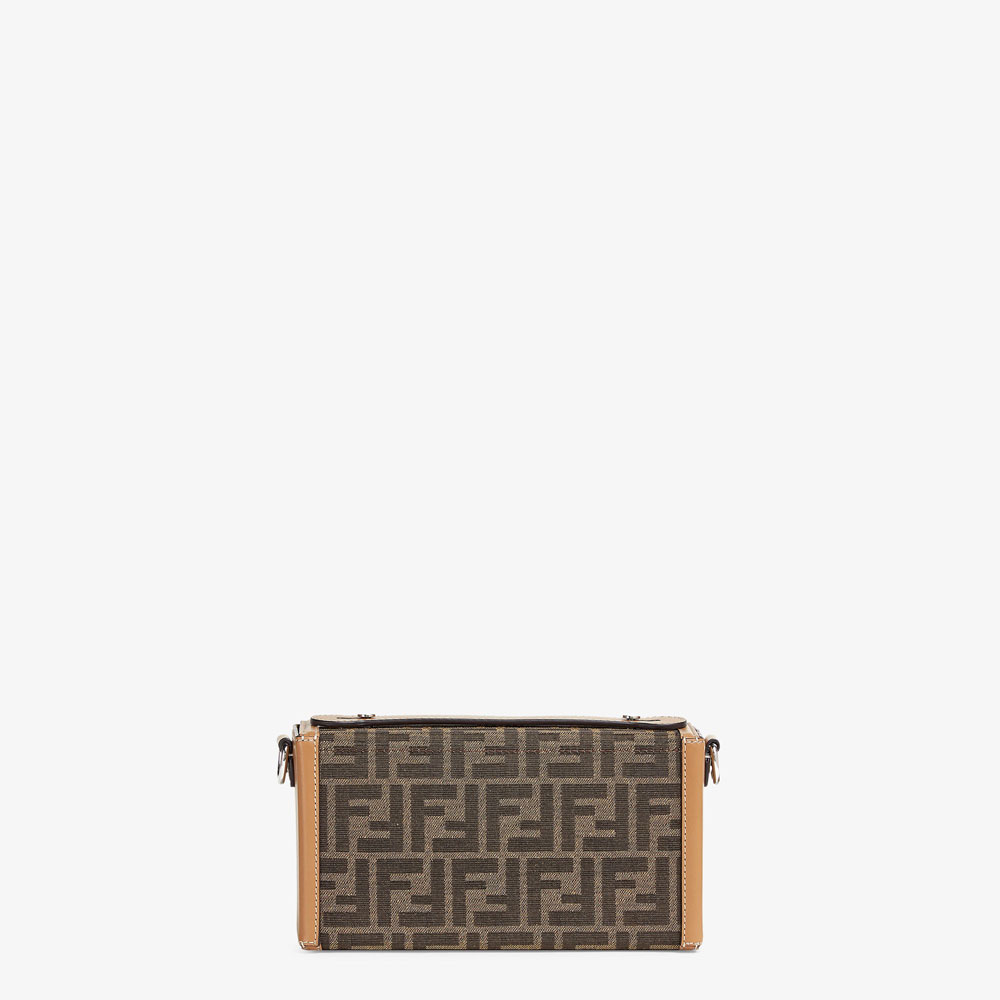 Baguette Soft Trunk bag made of fabric with jacquard FF motif. Flap with magnetic FF clasp. Embellished with beige leather.