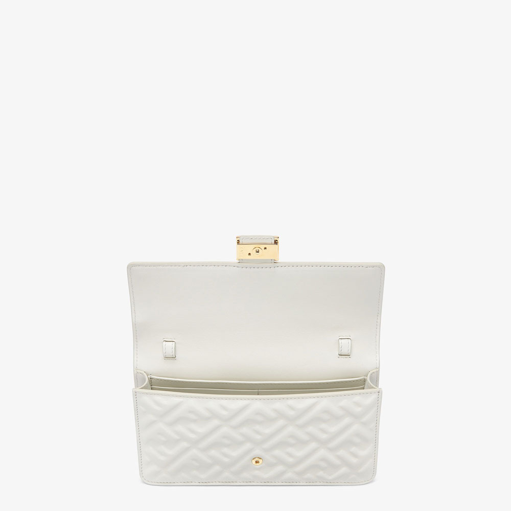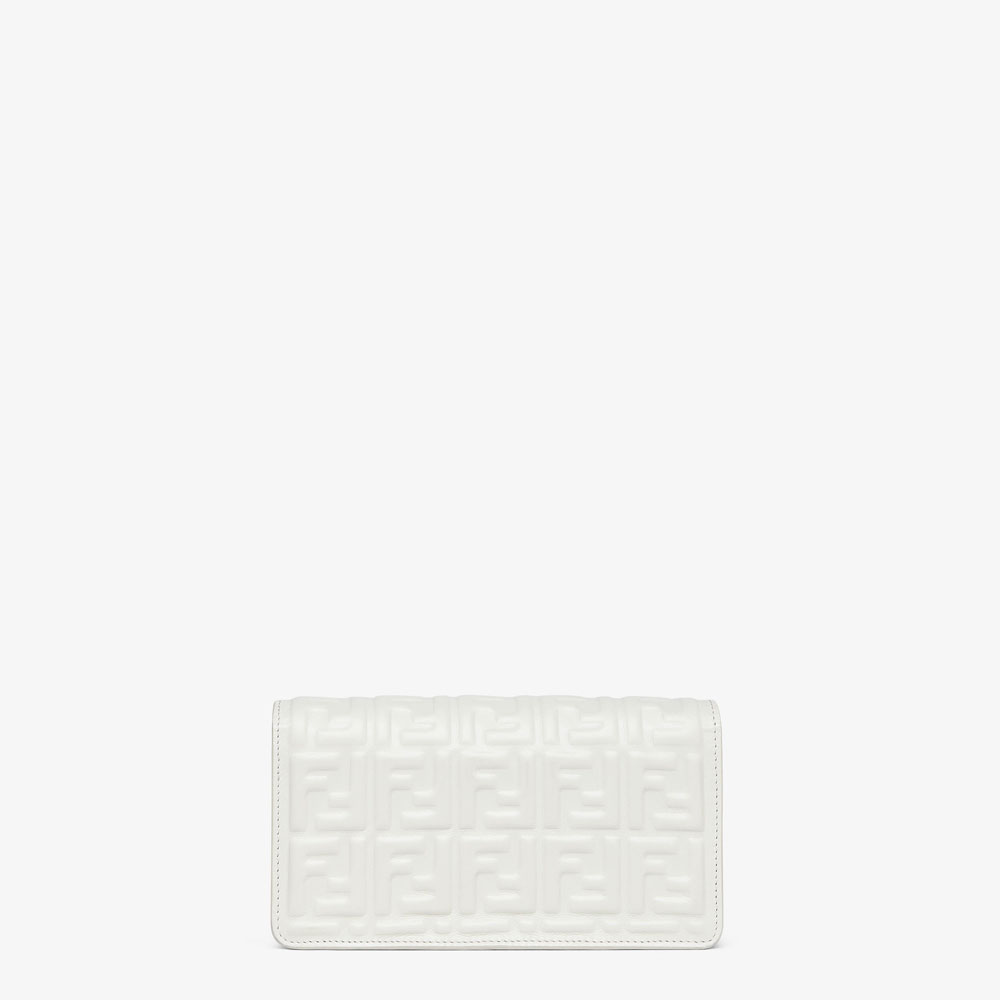 Fendi Small Bag in pristine white leather effortlessly elevates any outfit with its sleek Wallet On Chain design. Ideal for casual outings or evening events, this compact 21 cm bag pairs beautifully with minimalist dresses and denim jackets