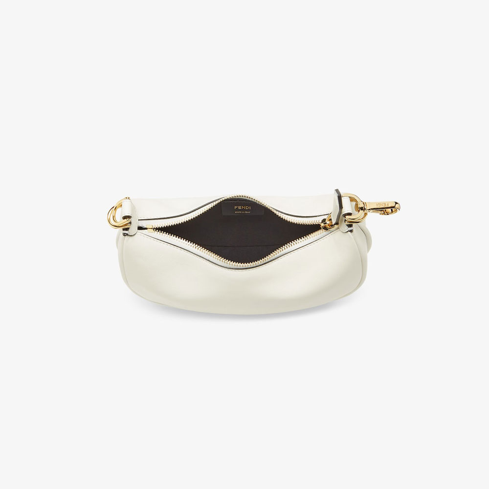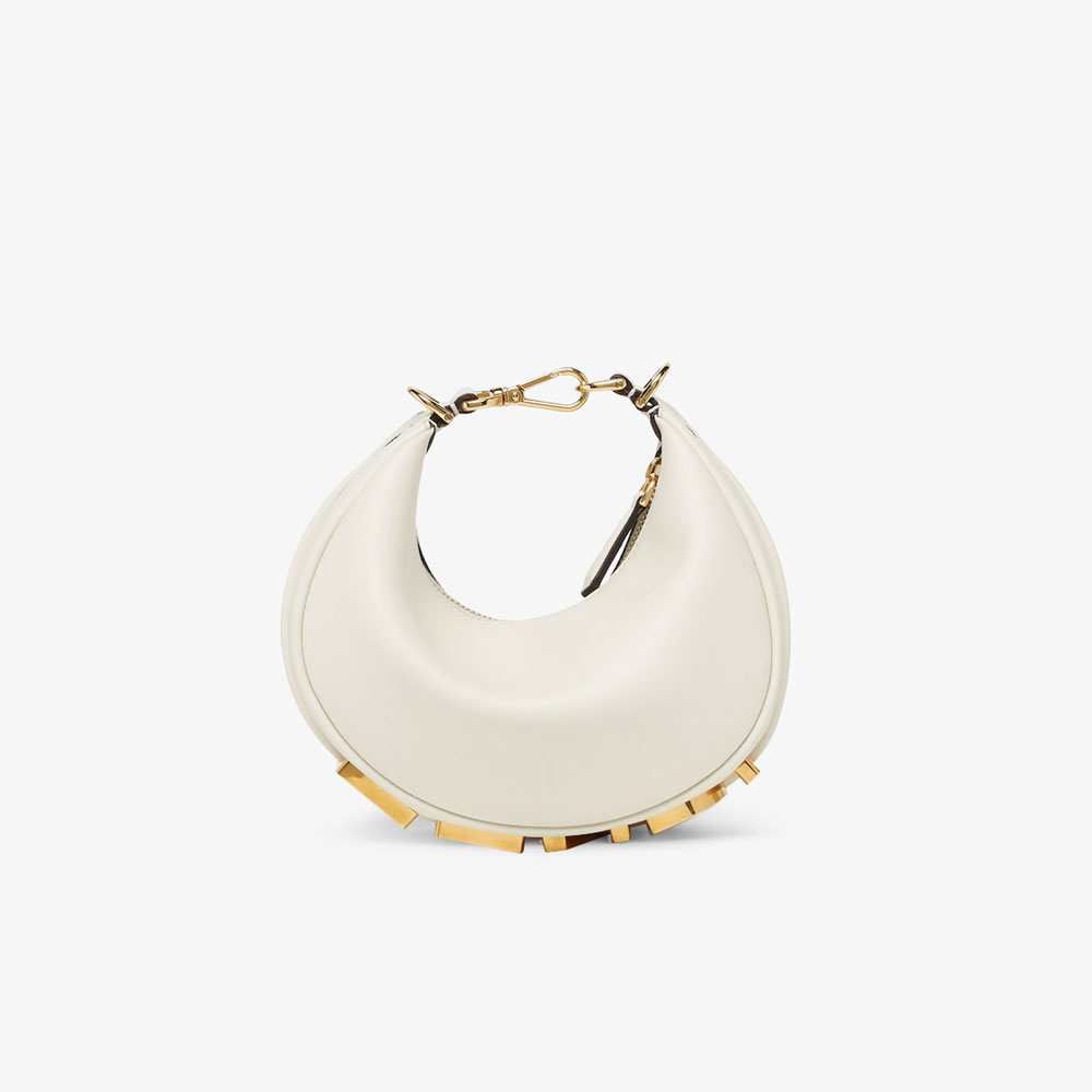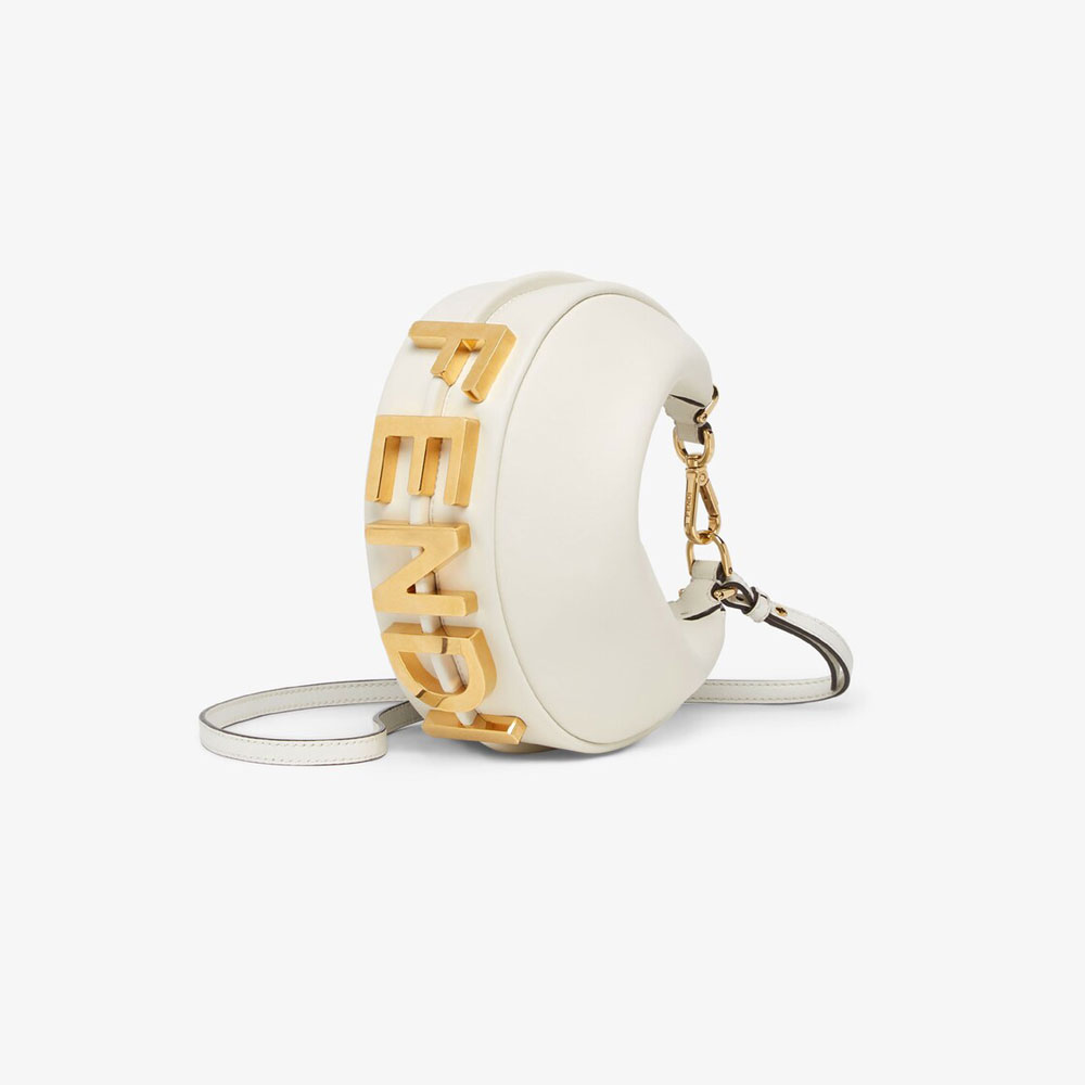 Mini hobo bag made of soft white leather, embellished with vintage gold metal FENDI lettering.Zipper closure with fabric-lined internal compartment