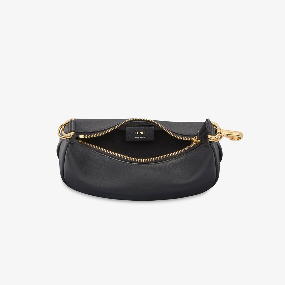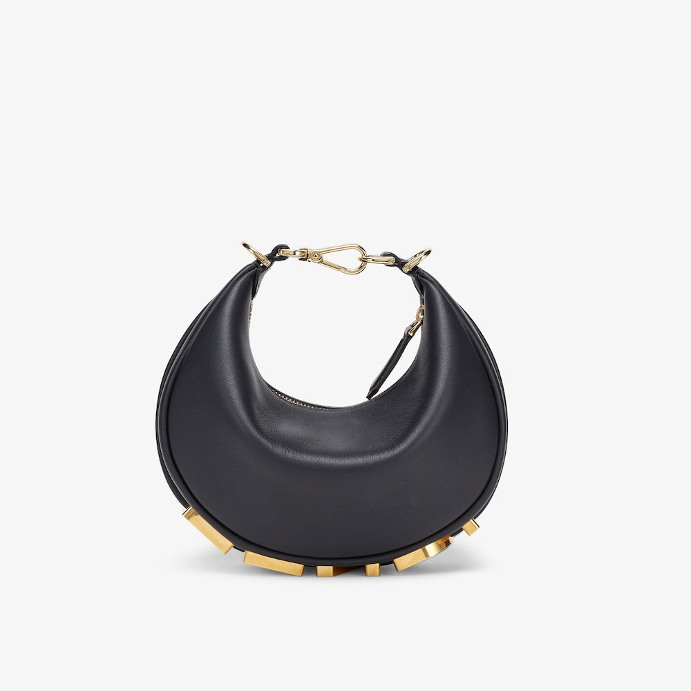 Mini hobo bag made of soft black leather. embellished with vintage gold metal FENDI lettering.
