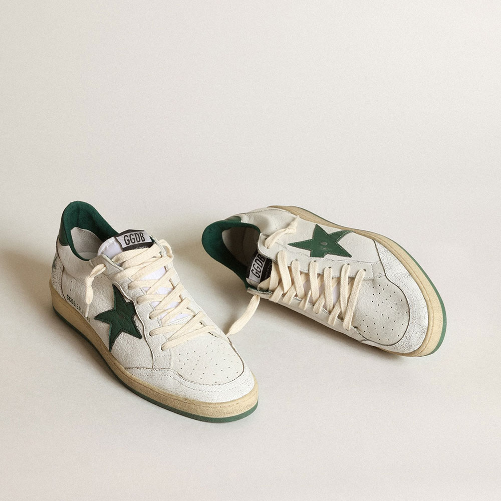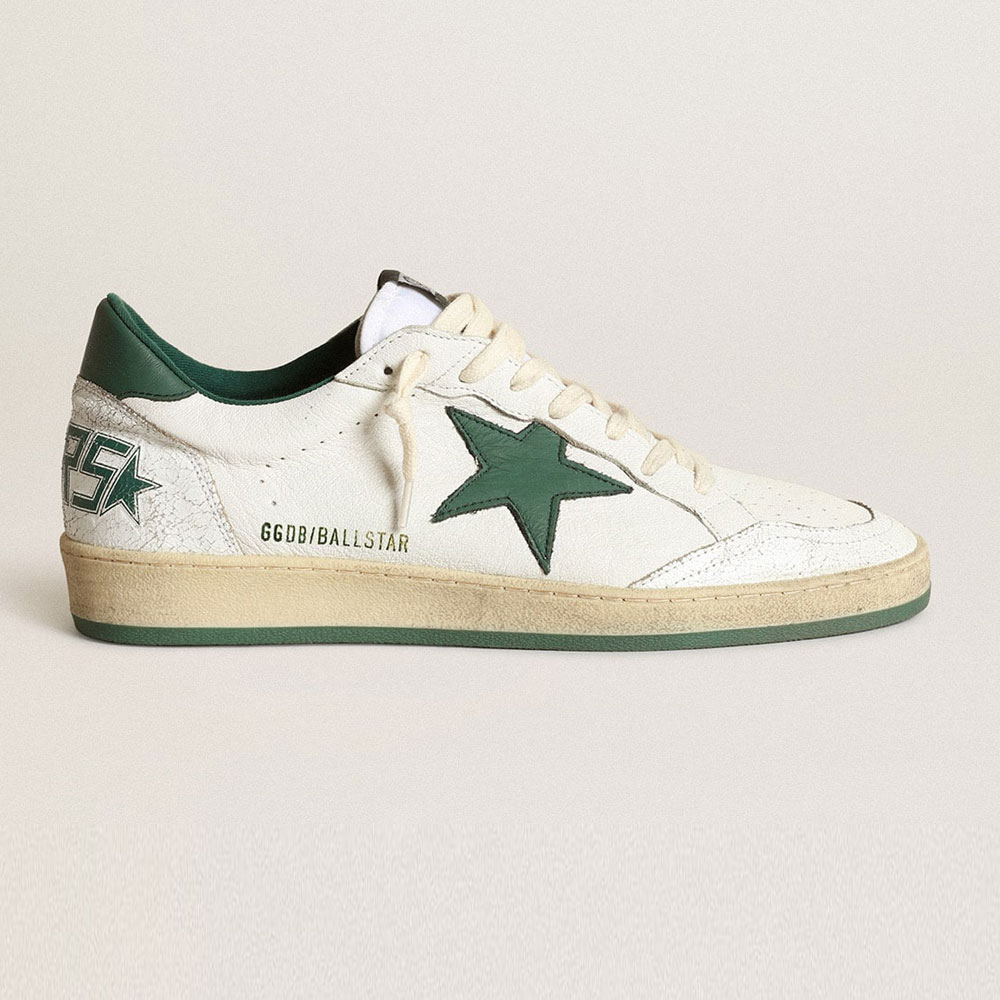 Golden Goose Ball Star in white nappa leather with green leather star and heel tab