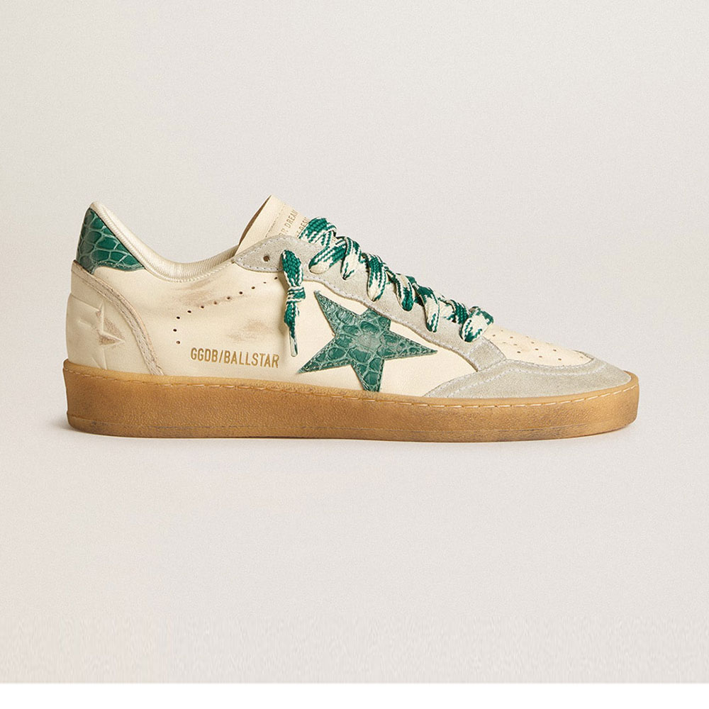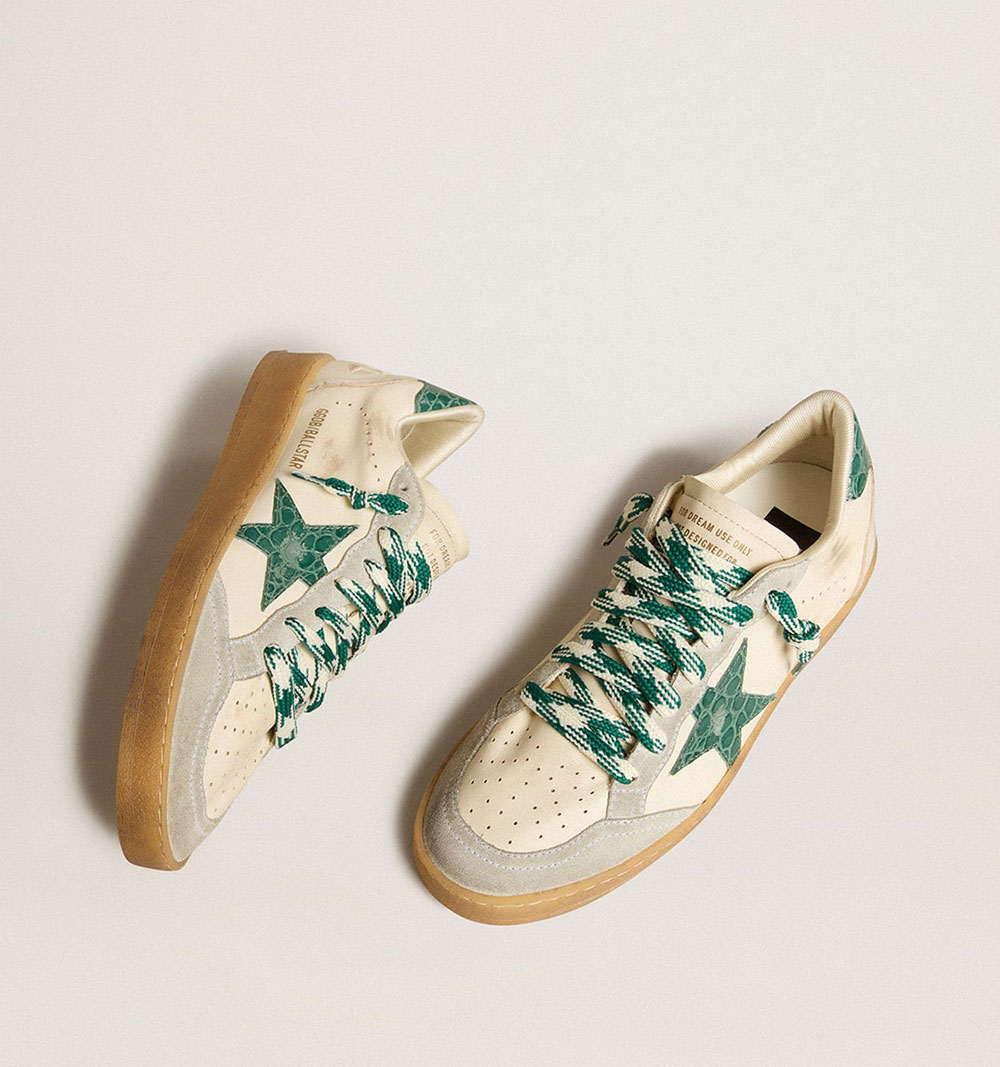 Golden Goose Ball Star LTD in nappa with green crocodile-print leather star