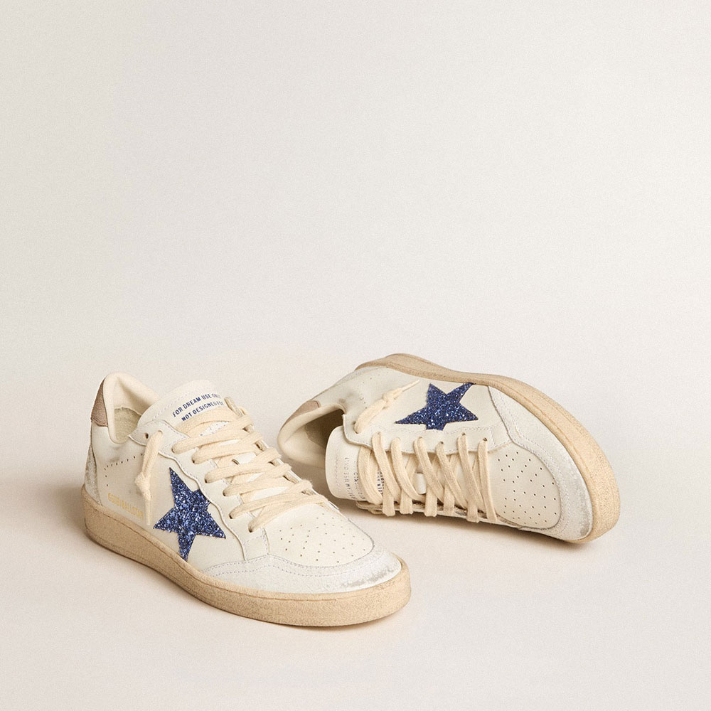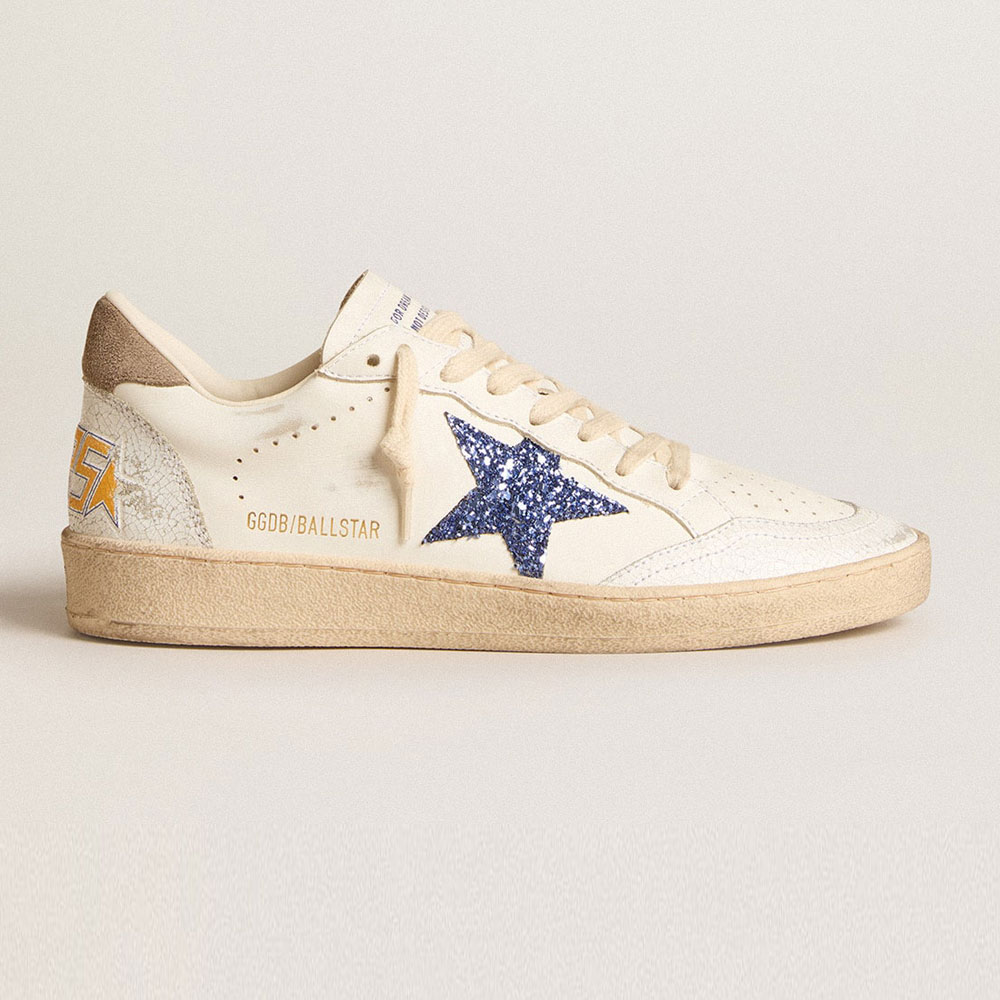 Golden Goose Ball Star with blue glitter star and dove-gray suede heel tab
