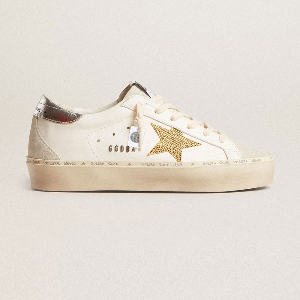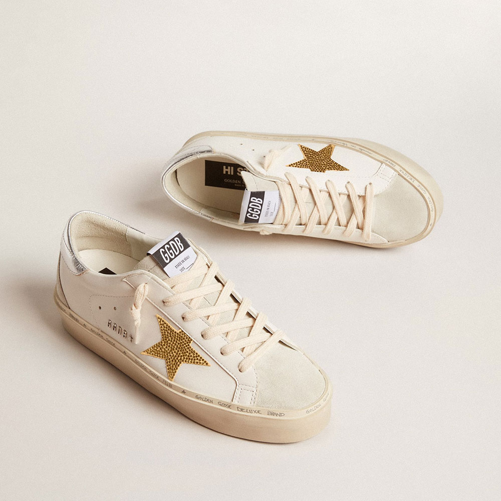 Golden Goose Hi Star with Swarovski crystal star and silver leather heel tab