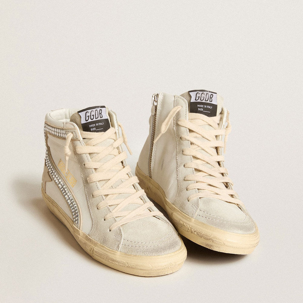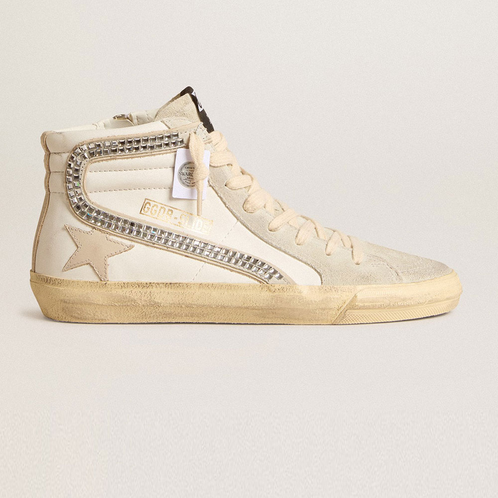 Golden Goose Slide with nude leather star and suede and Swarovski crystal flash