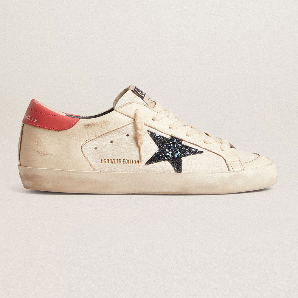 Golden Goose Super-Star LTD in nappa with blue glitter star and red heel tab