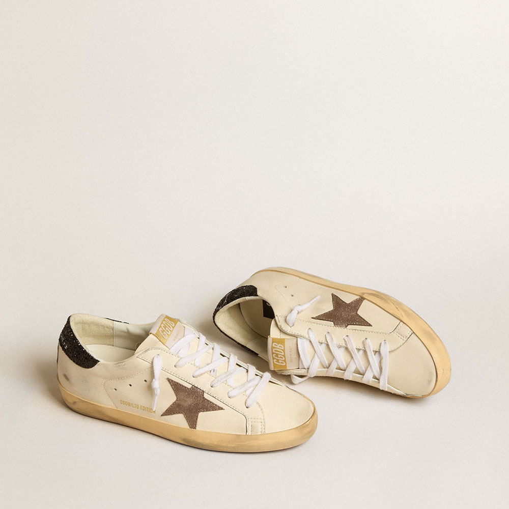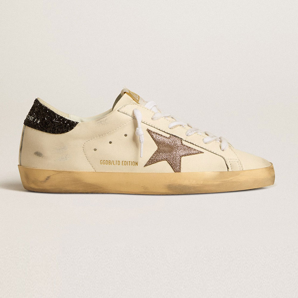 Golden Goose Super-Star LTD with laminated leather star and black glitter heel tab