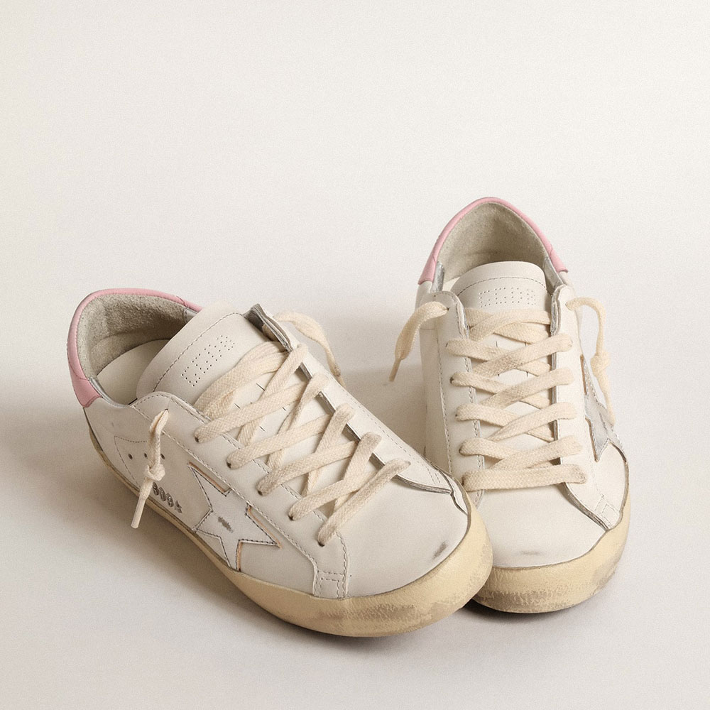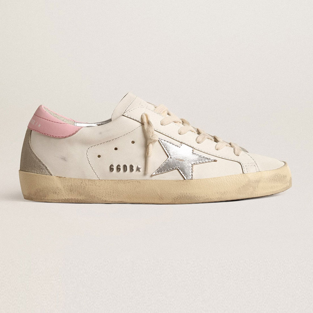 Golden Goose Super-Star with silver leather star and pink heel tab