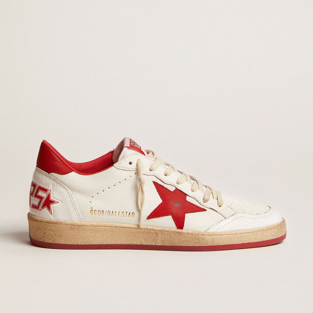 Dreaming of the Eighties. Our Ball Star sneakers have an American college vibe caught between a hoop shot and a skateboard ride. This model with a white leather upper features a red GGDB star and heel tab.