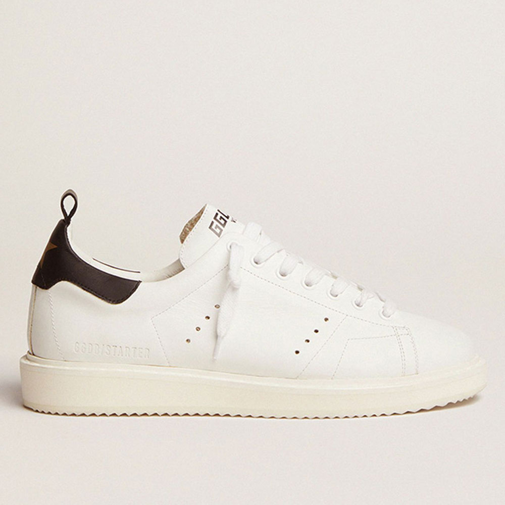 Essential design and clean lines: our Starter sneakers are the most minimalist version in the Golden Goose world. This model with a white leather upper features a black leather heel tab and a gold screen-printed star. The white laces complete the look.