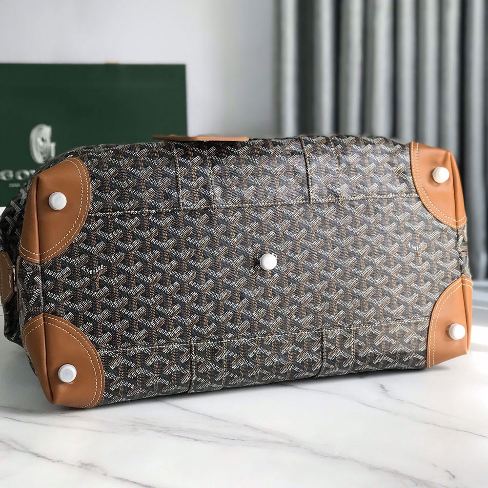 The elegant Goyard bowling bag offers versatile functionality for travelers.