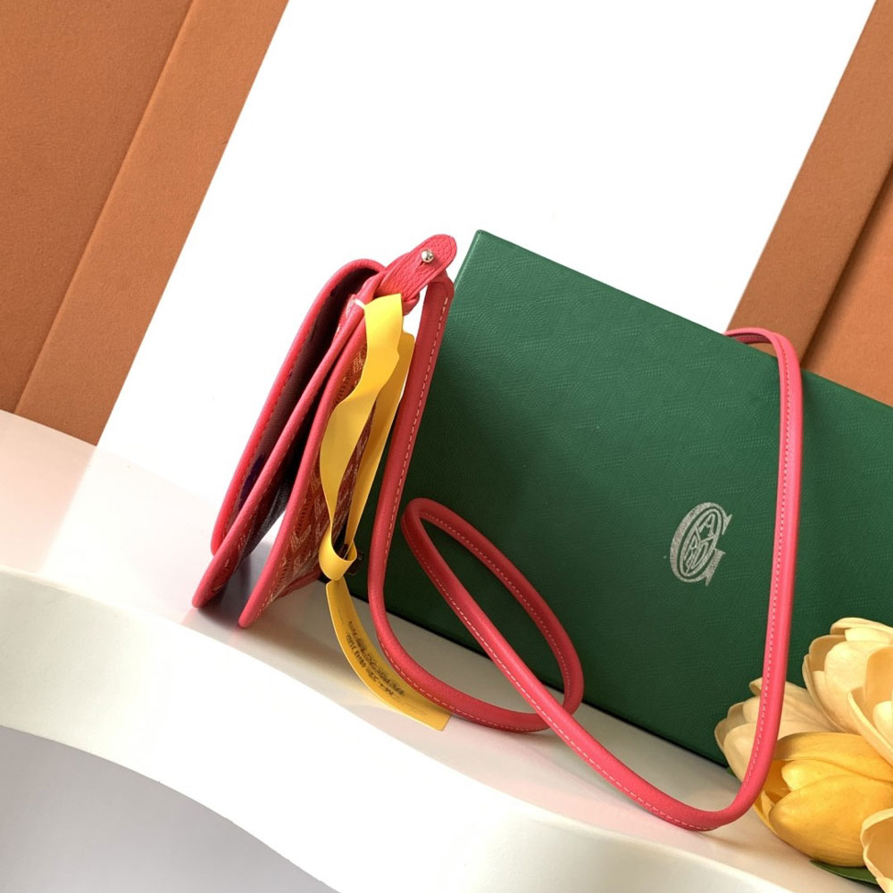 The Goyard Plumet Pouch-Wallet in Fuchsia is a versatile accessory that effortlessly elevates any outfit. For a chic daytime look, pair it with a white linen dress and neutral sandals-the vibrant pink hue adds a playful pop of color. Alternatively, style it with tailored black trousers, a silk blouse, and loafers for polished sophistication. This pink Goyard bag also complements casual ensembles, like faded denim and a striped Breton top. The detachable strap allows it to transition seamlessly from a clutch to a crossbody, perfect for brunch or evening events. Its floral-inspired detailing harmonizes with feminine dresses or structured blazers, making it a must-have for fashion-forward women.