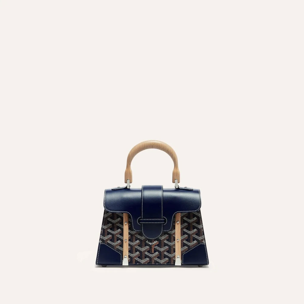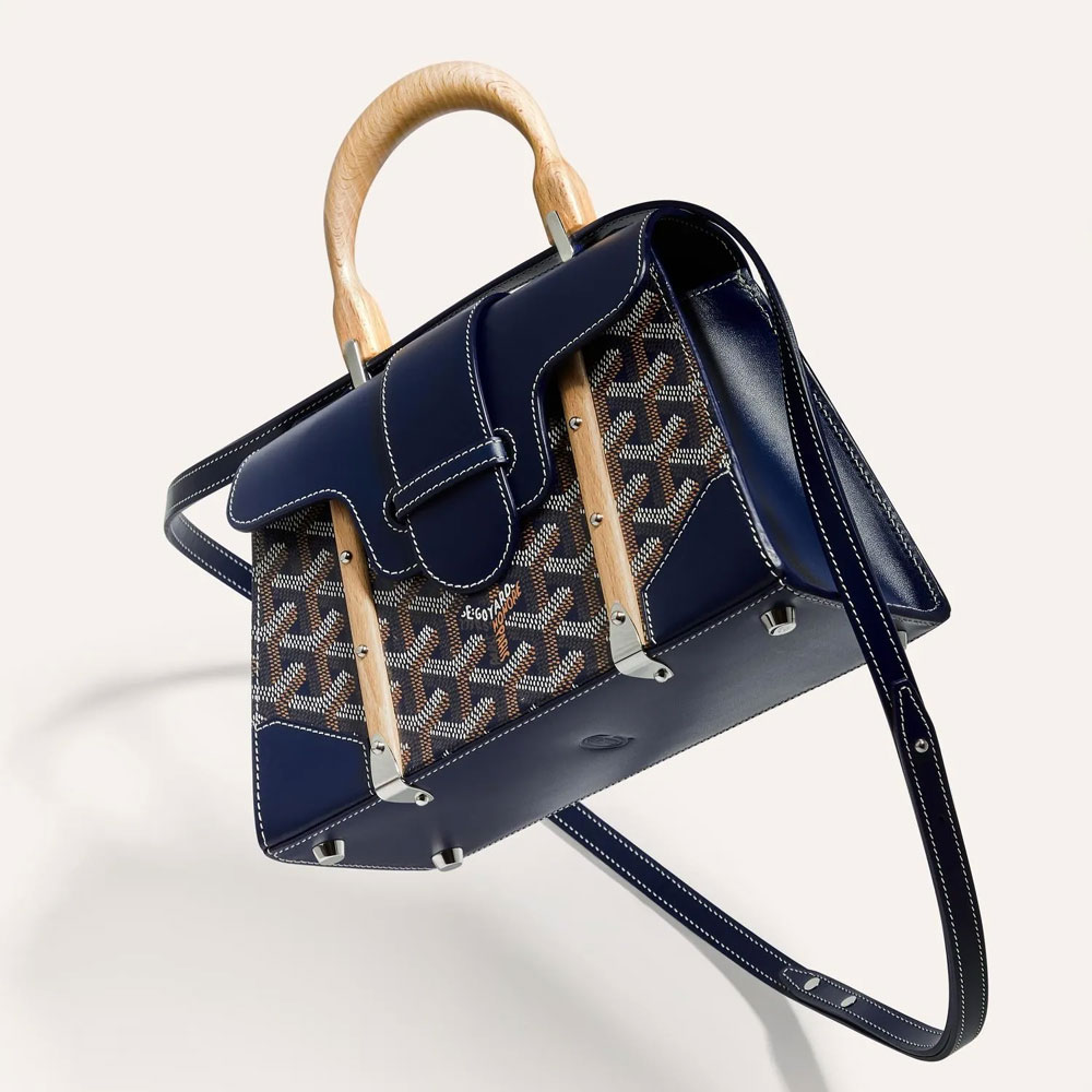 The Saigon reflects Goyard's heritage, featuring wooden accents and protective elements.