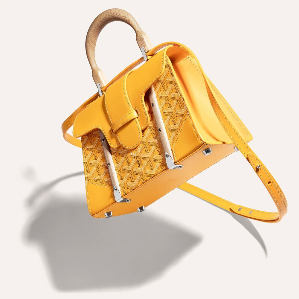 The iconic Saigon pouch embodies Goyard's heritage craftsmanship.