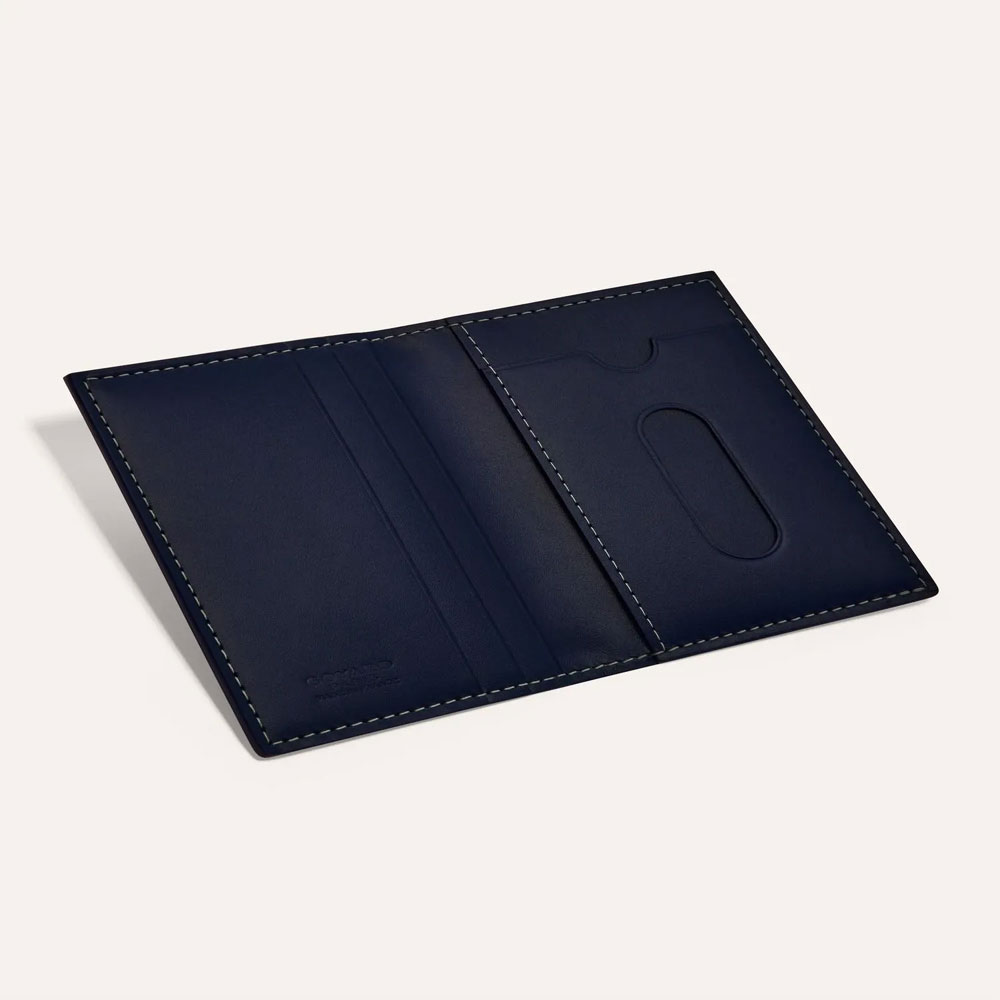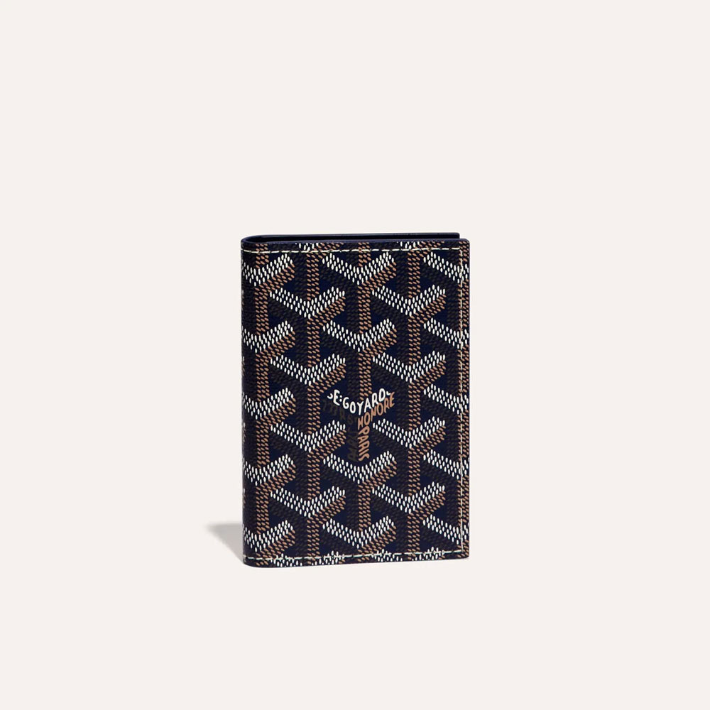 The Goyard Saint-Marc card holder in navy blue combines style with functionality.