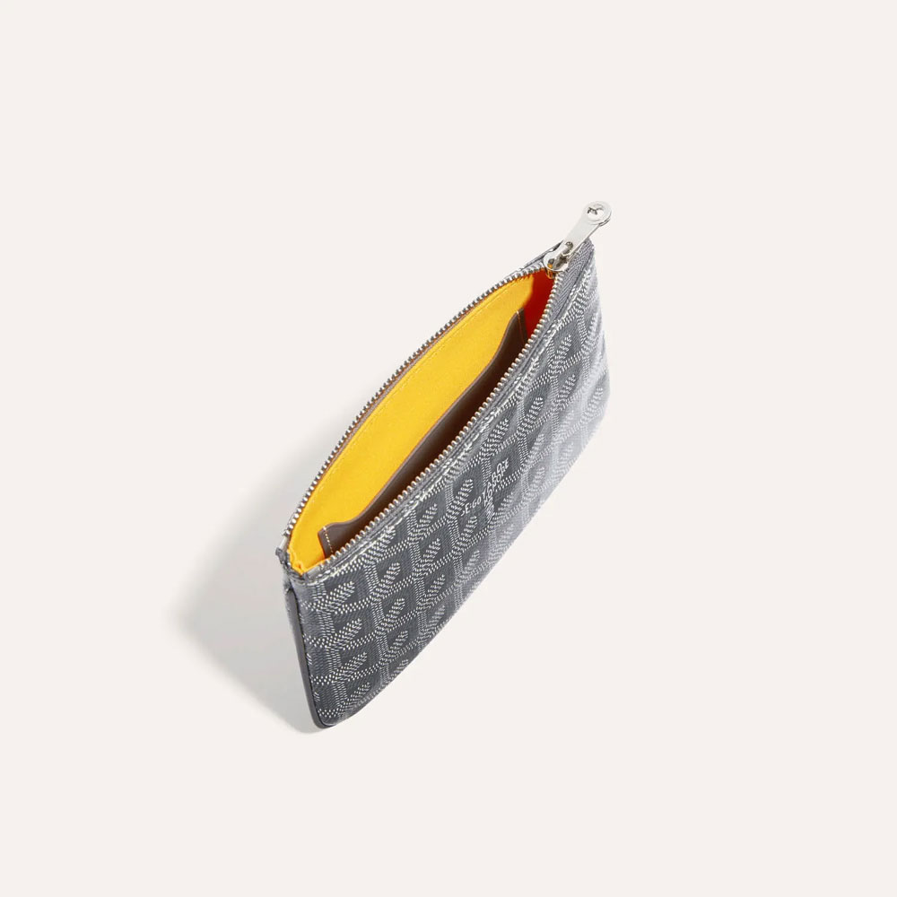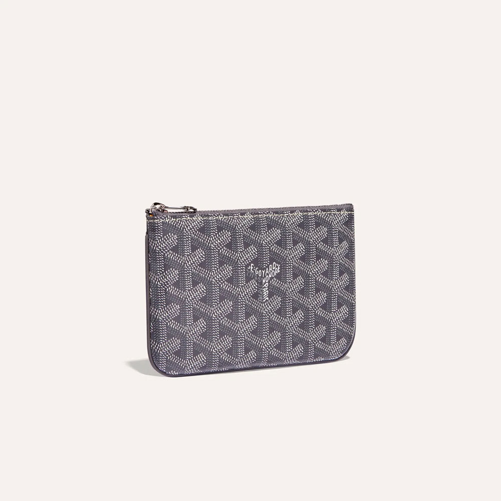 The compact Goyard Wallet price worthy pouch features secure zip closure.