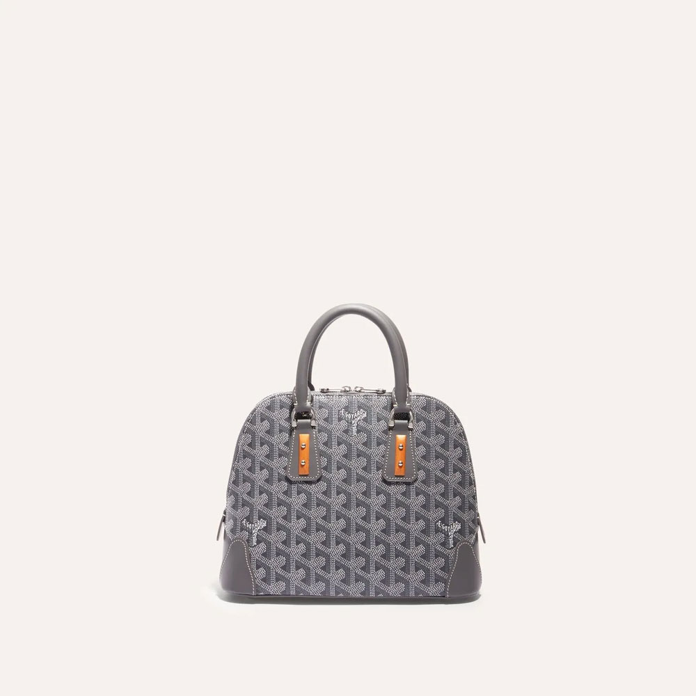 The Goyard Vendome Mini in elegant grey offers a compact take on the classic design.
