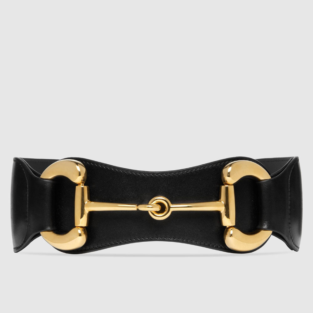 Presented here on black leather is the 1955 Horsebitan emblematic symbol tracing back to the Houses equestrian roots and serving as continual inspiration for experimental styles such as this wide belt.
