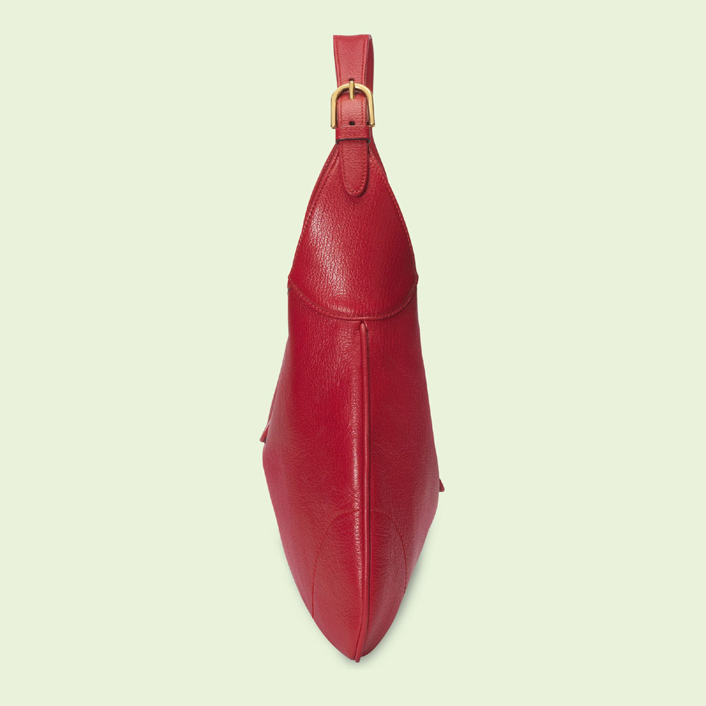 The Cruise 2023 Gucci Cosmogonie collection was presented against the backdrop of the historic Castel del Monte in Italy. The show brought together aesthetics from distant eras and geographies. and linked elements from the past with the present. This new crescent-shaped shoulder bag was shown on the runway and was inspired by the Houses archives. it is crafted in soft leather and features the Double G emblema code originally introduced in the 1970s.